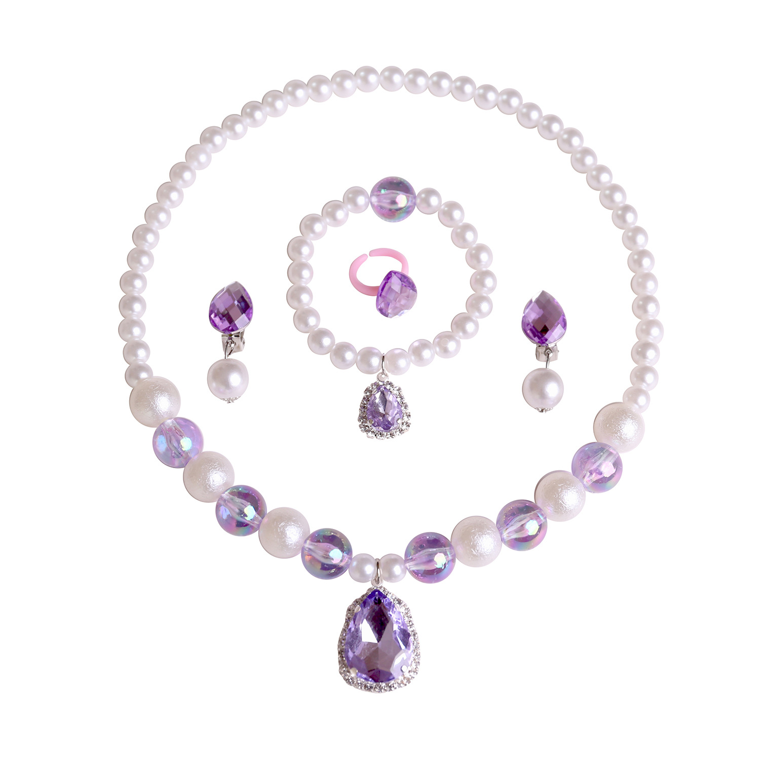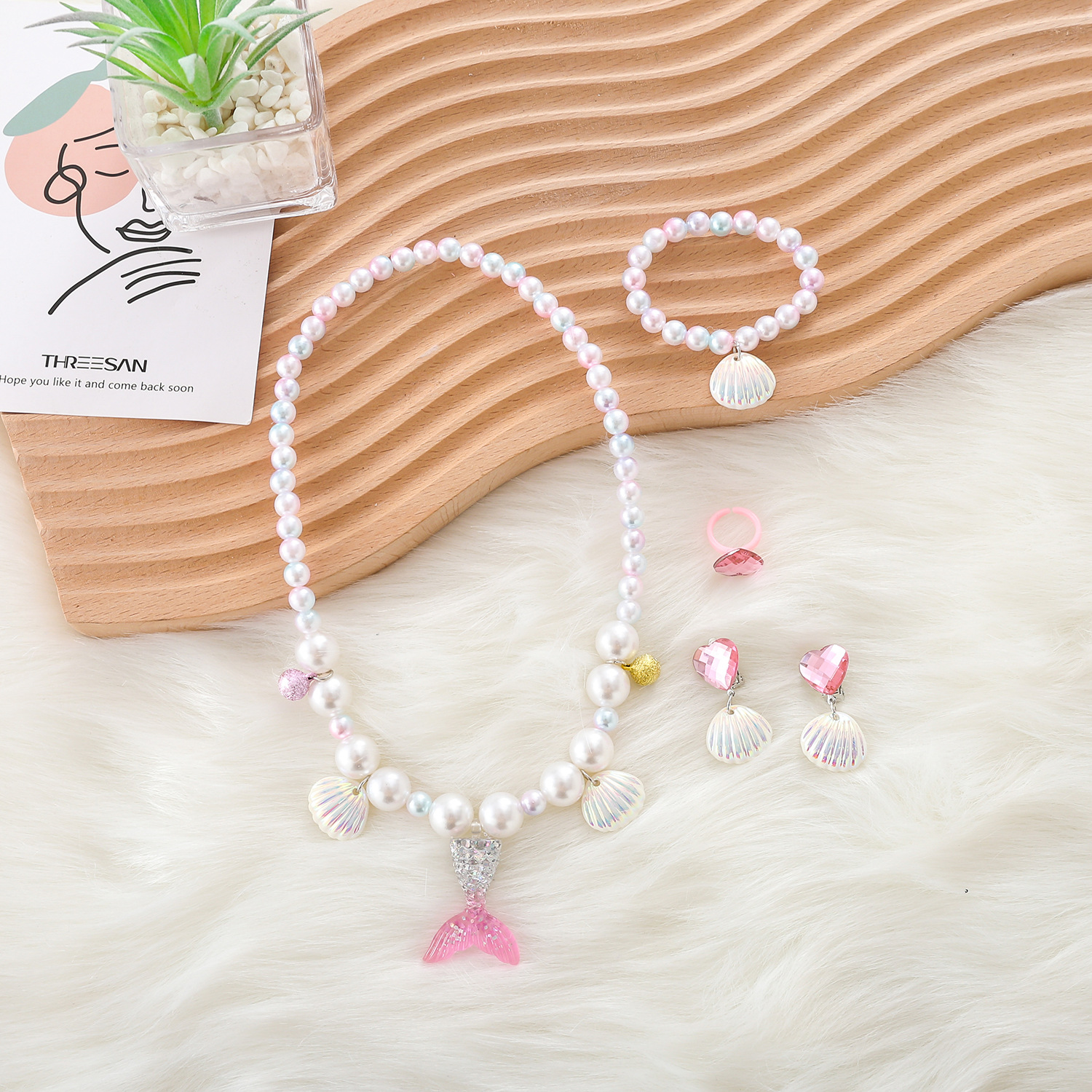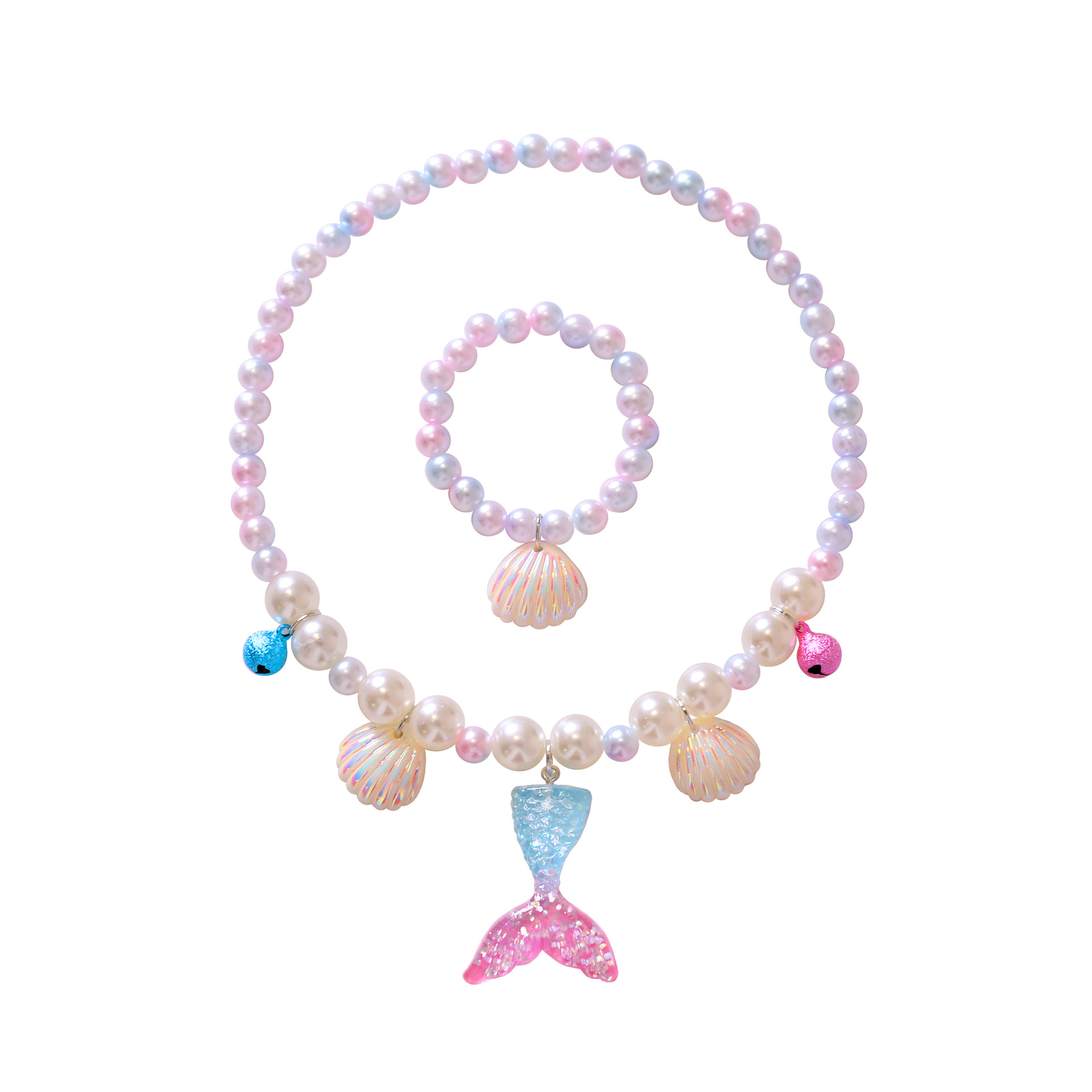 2021 Детское Ожерелье Хвост Русалки Жемчужное Ожерелье Браслет Кольцо Серьги Костюм Детские Аксессуары Для Девочек