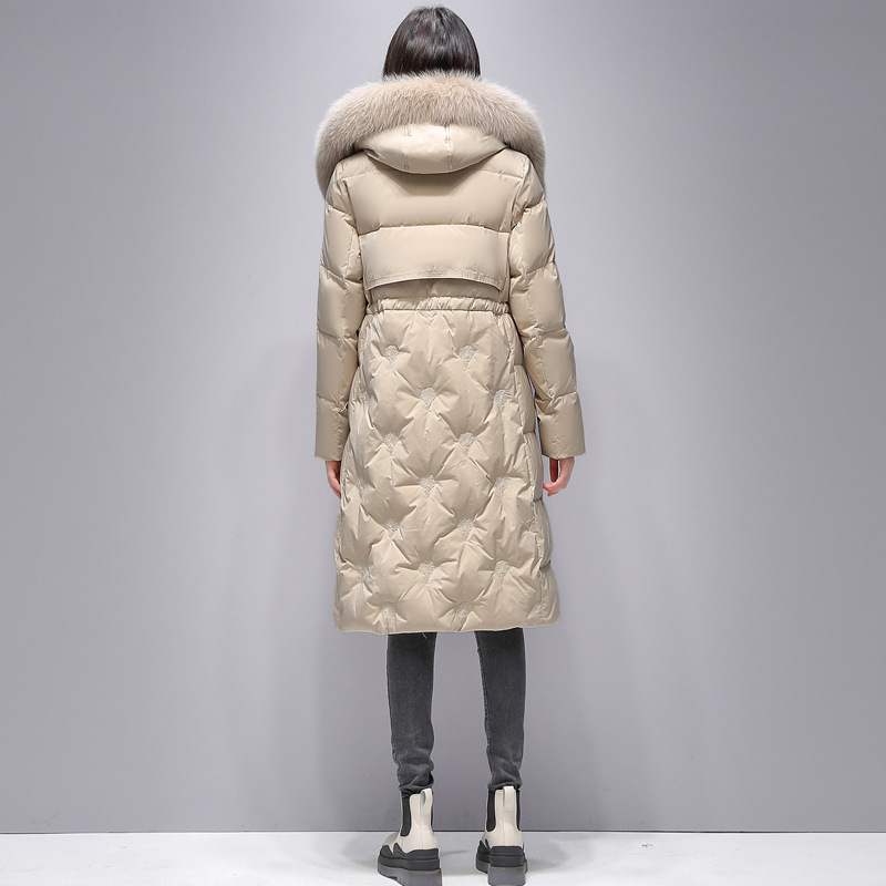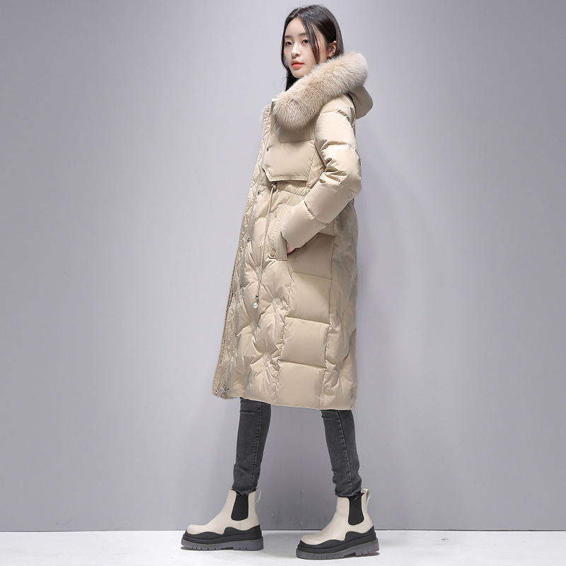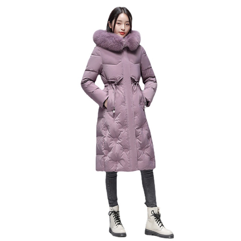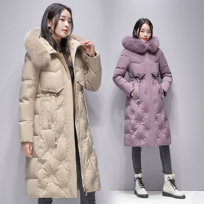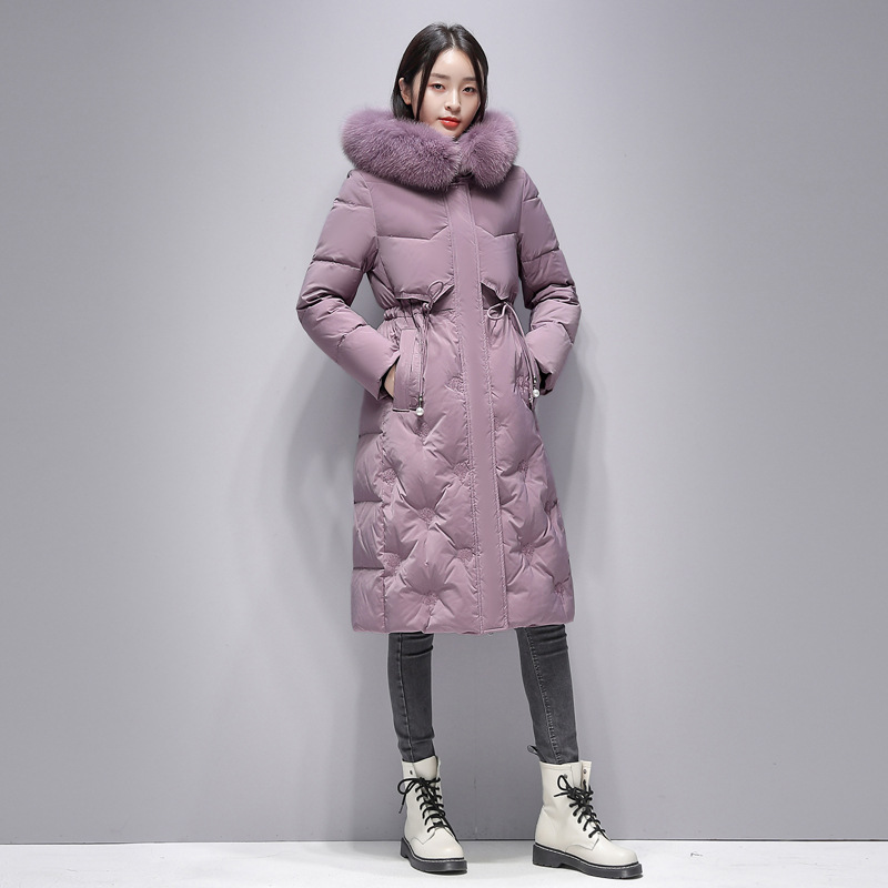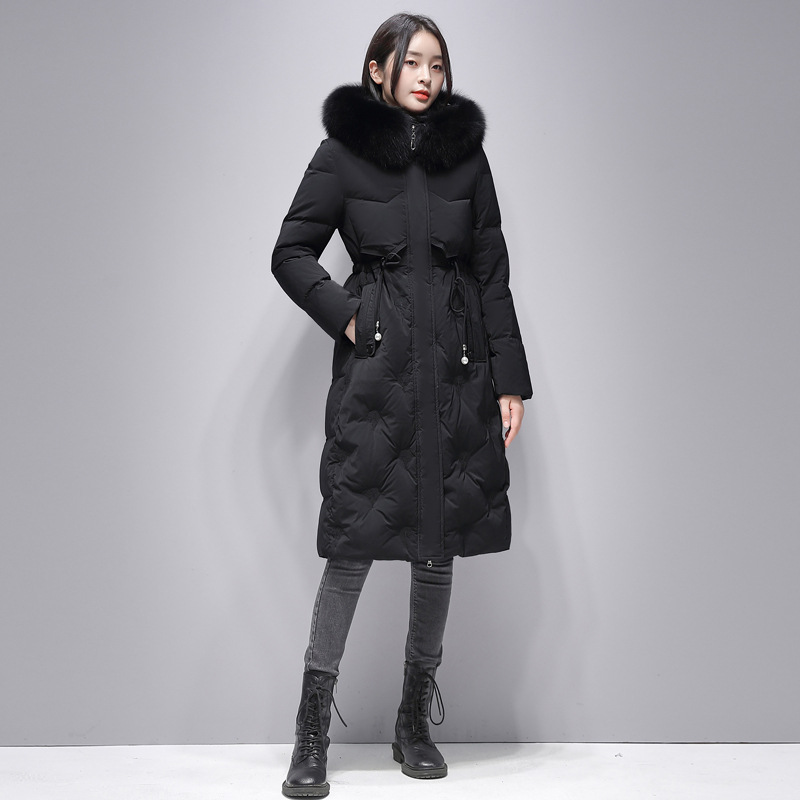 Пуховик с воротником из натурального Лисьего меха женский 2023 Зимний новый тонкий шнурок с капюшоном средней длины на талии
