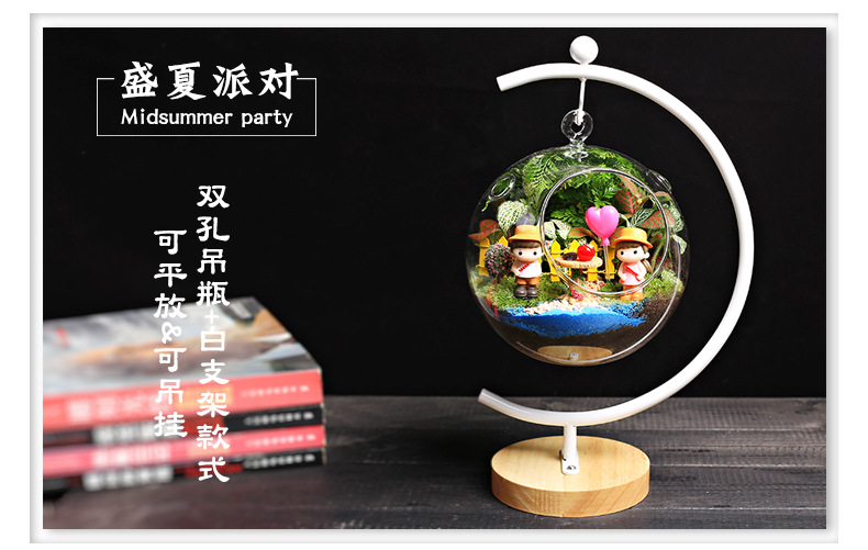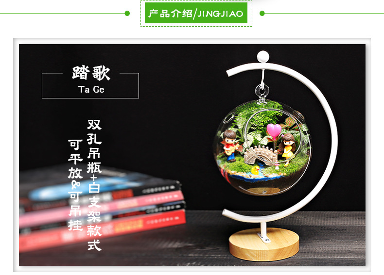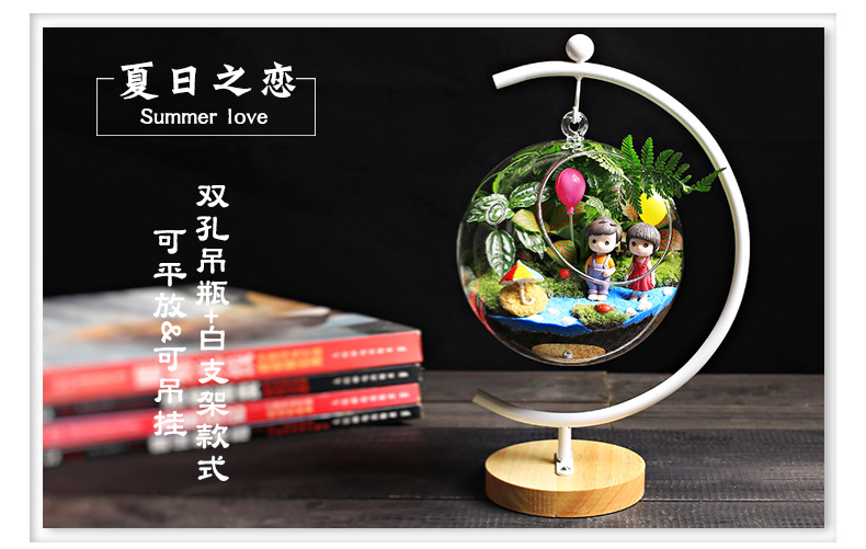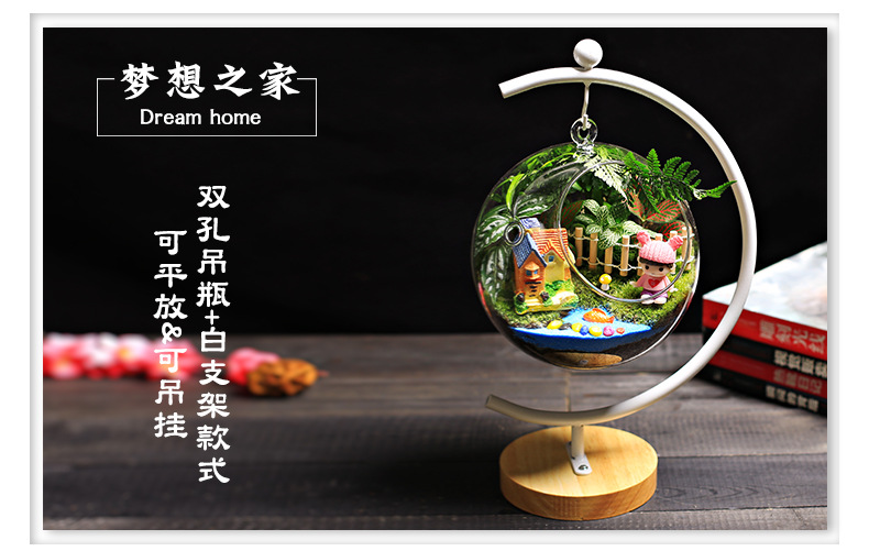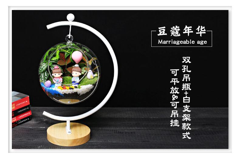 16 см подвесная бутылка с двойным отверстием G-образный белый кронштейн маленькое растение бонсай комнатное зеленое растение мох микропейзаж DIY материал сумка