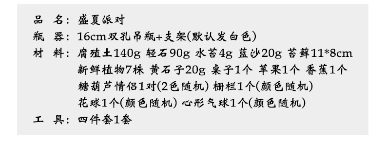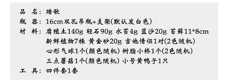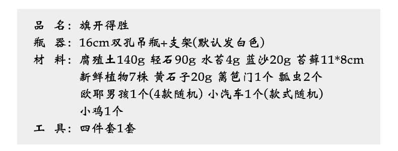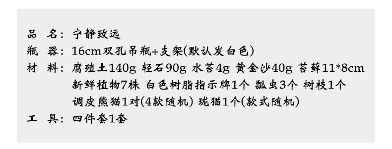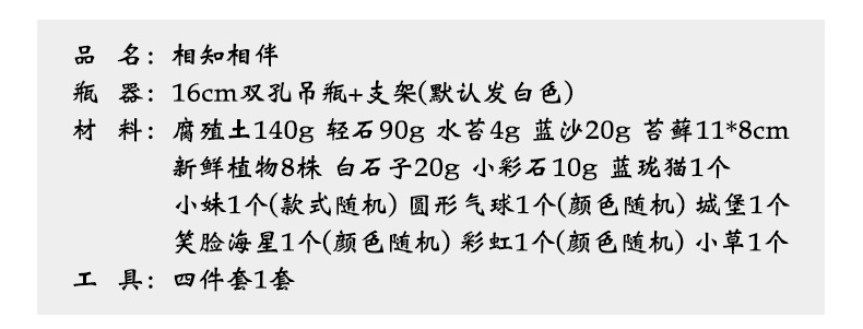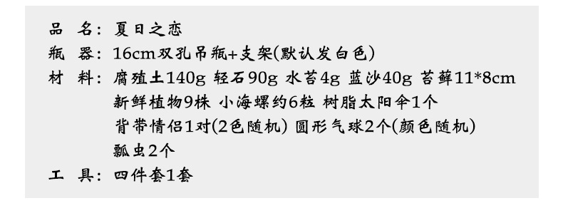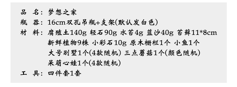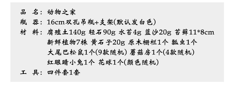 Step Song (подвесная бутылка с двойным отверстием 16 см + белый кронштейн G-типа); Win (бутылка с двойным отверстием 16 см + кронштейн G); Дом животных (бутылка с двойным отверстием 16 см + кронштейн G); Кардамон (бутылка с двумя отверстиями 16 см + кронштейн G); В сопровождении знаний (бутылка с двойным отверстием 16 см + кронштейн G); Летняя Вечеринка (бутылка с двойным отверстием 16 см + кронштейн G); Летняя любовь (бутылка с двойным отверстием 16 см + кронштейн G); Тихий Чжиюань (бутылка с двойным отверстием 16 см + кронштейн G); Дом мечты (бутылка с двойным отверстием 16 см + кронштейн G)