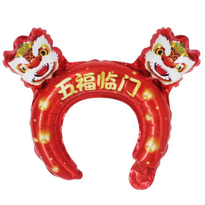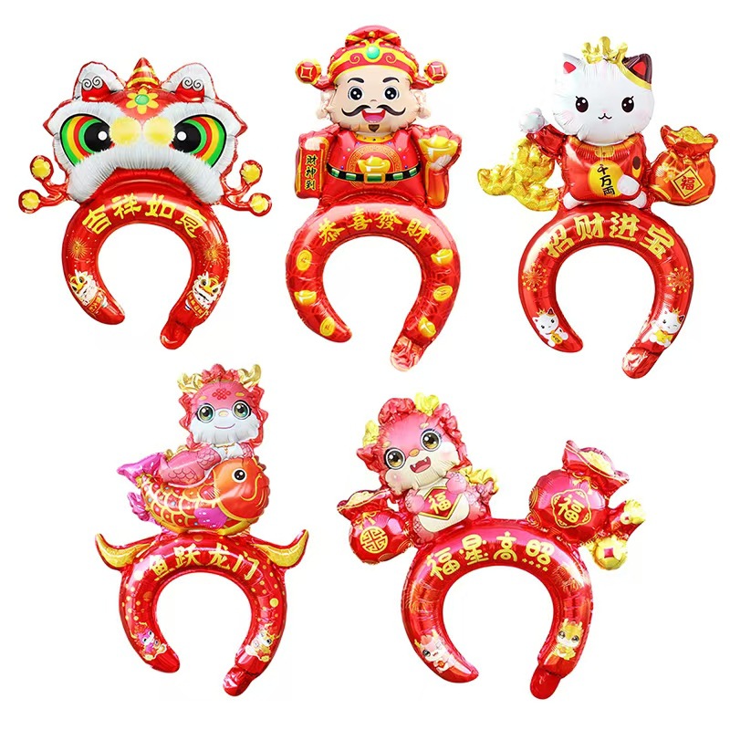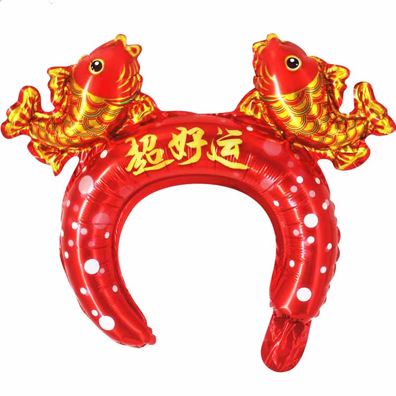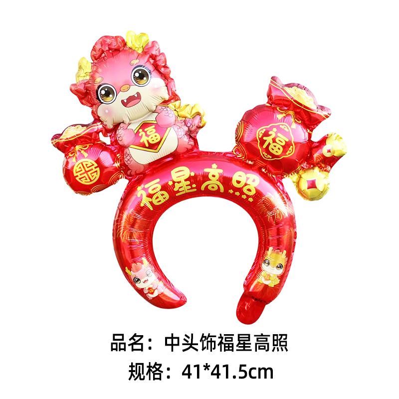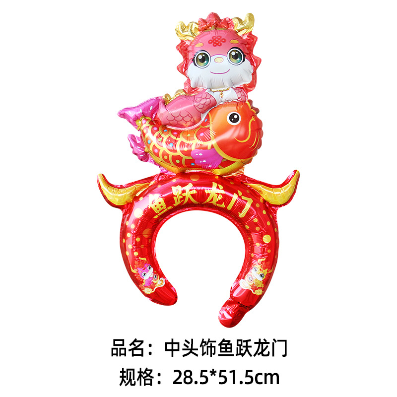 2024 Год Дракона Новый Средний воздушный шар с повязкой на голову Бог богатства счастливая рыба Юэ Лунмэнь Весенний фестиваль детский головной убор