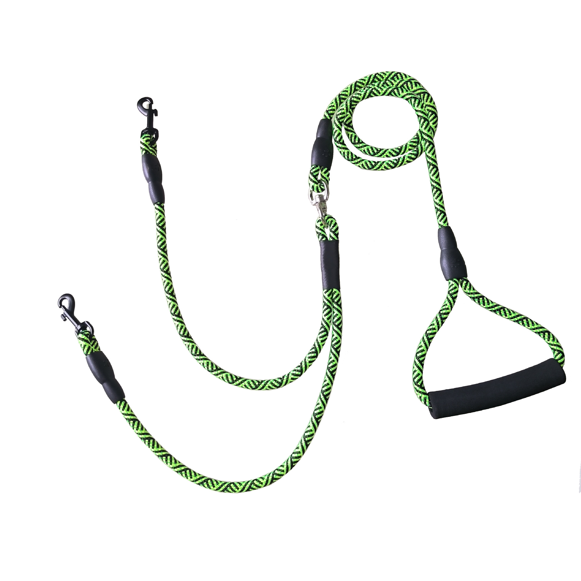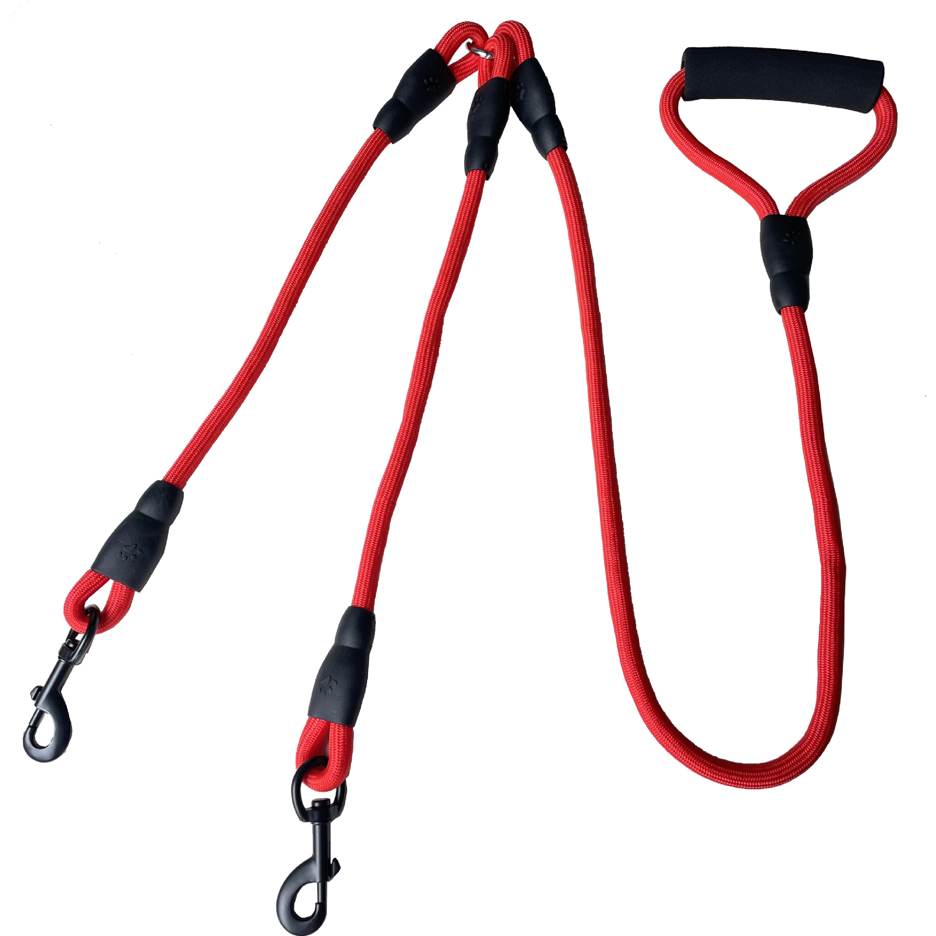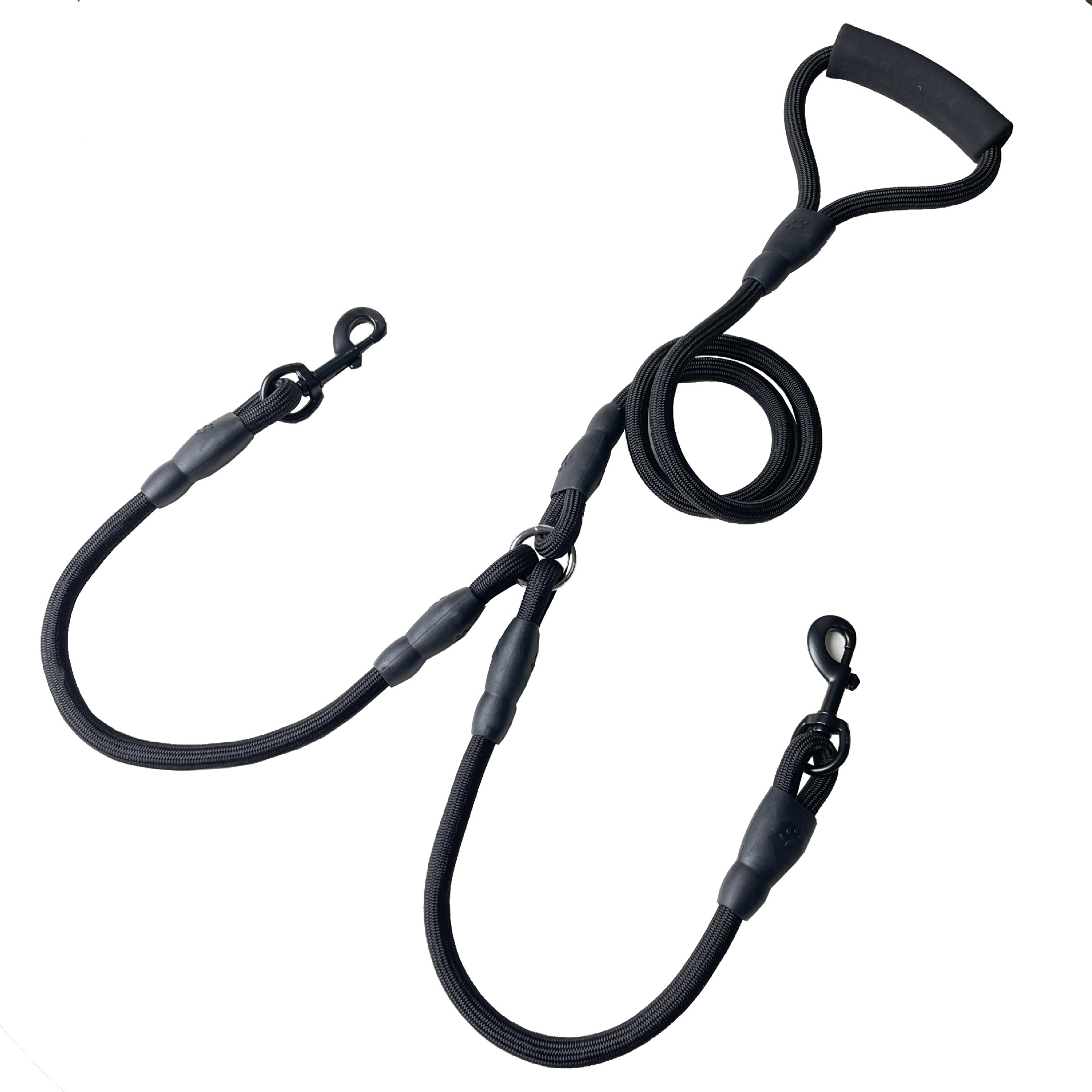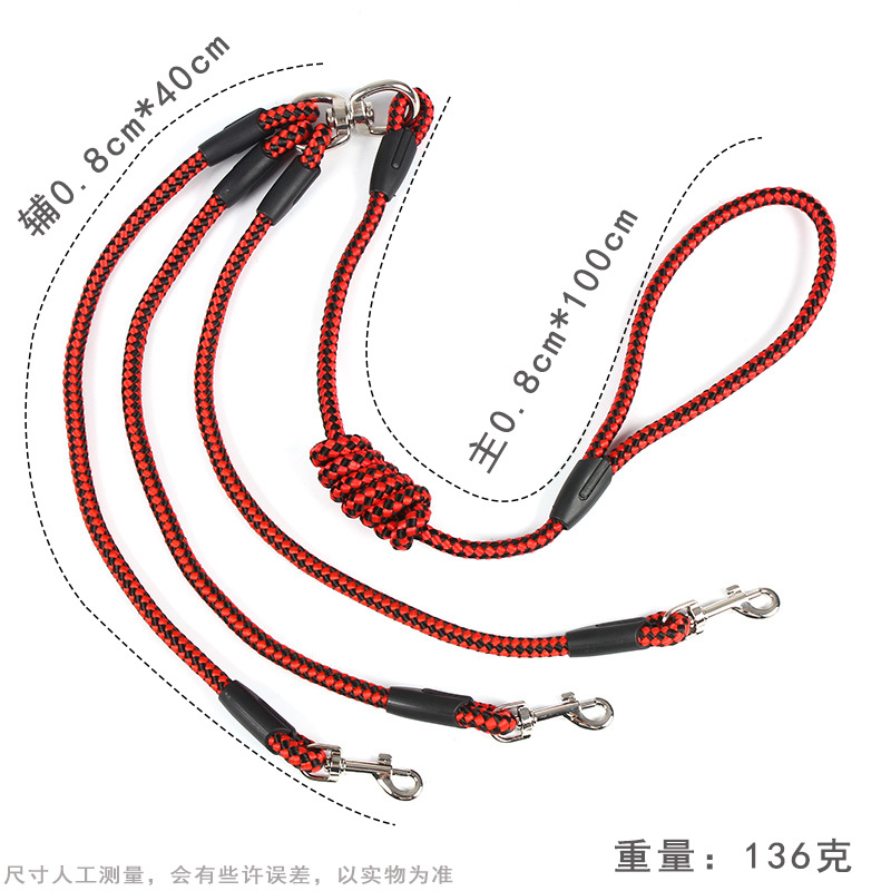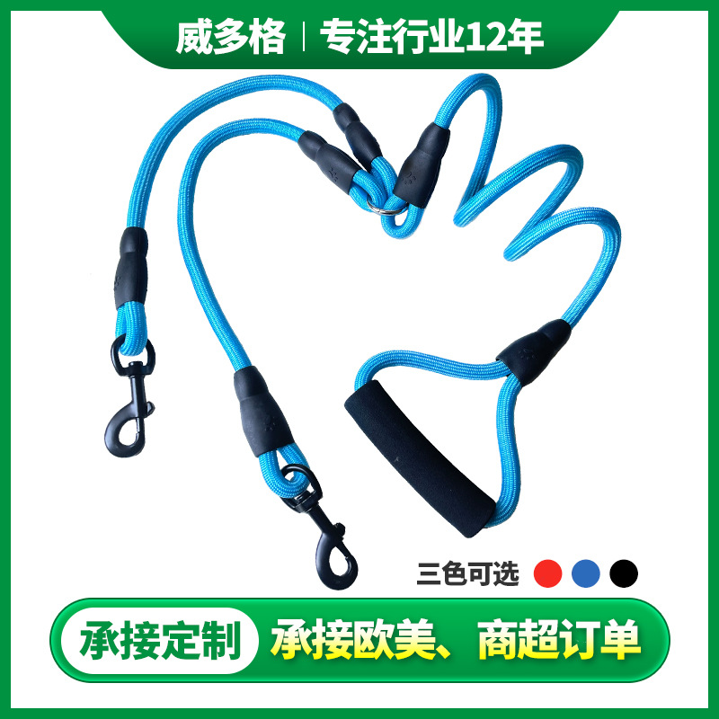 Товары для домашних животных оптом Тяговая веревка для домашних животных один перетащите две собаки прогулочная веревка ручная защита нейлоновая ручка круглая веревка двухголовая Тяговая веревка