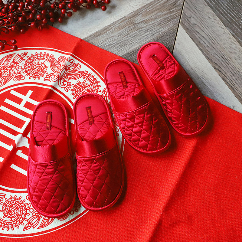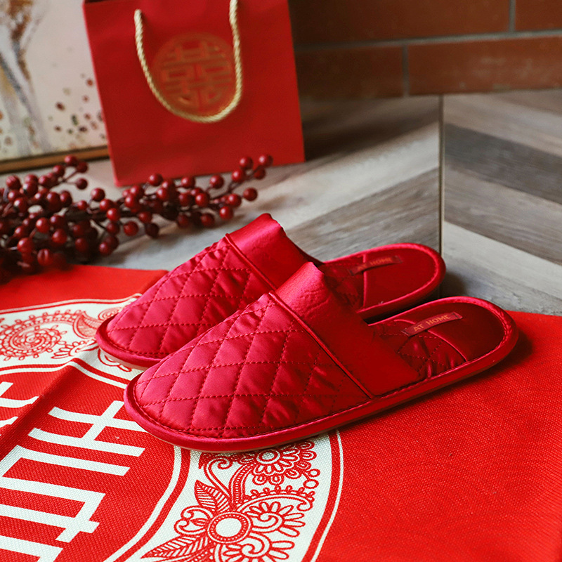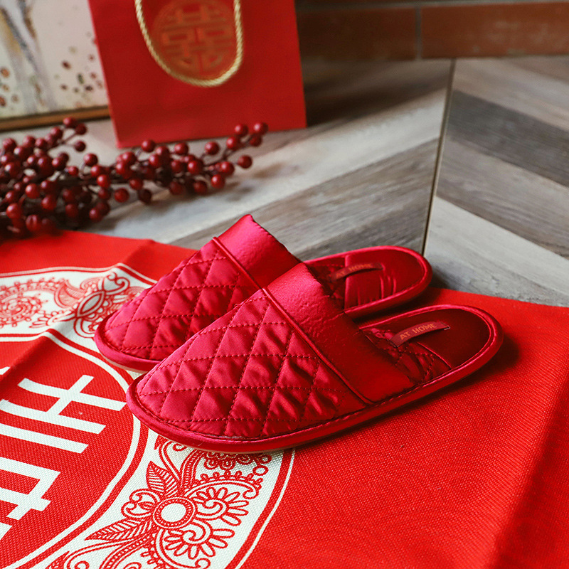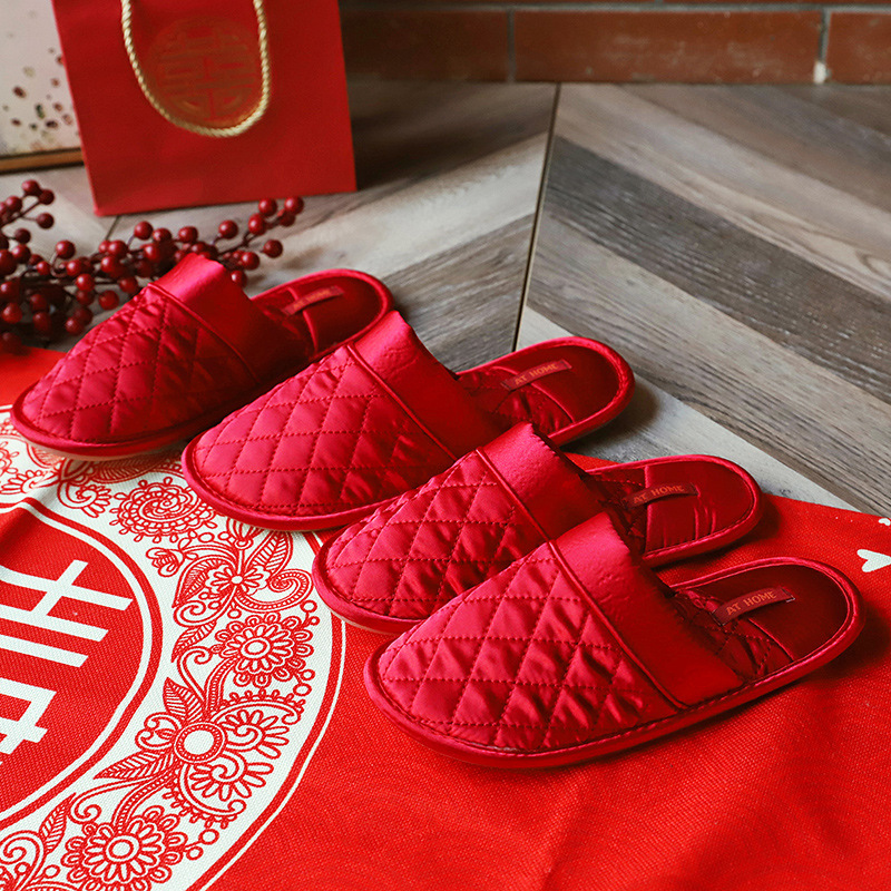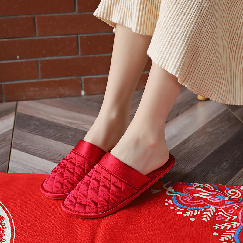 Свадебные тапочки для женщин, осенне-зимние праздничные красные, парные, для домашнего использования, в качестве приданого, для свадебного торжества, закрытые, атласные, свадебный стиль.