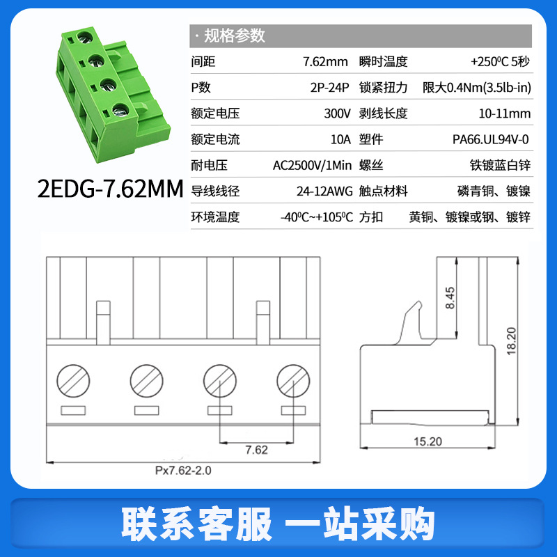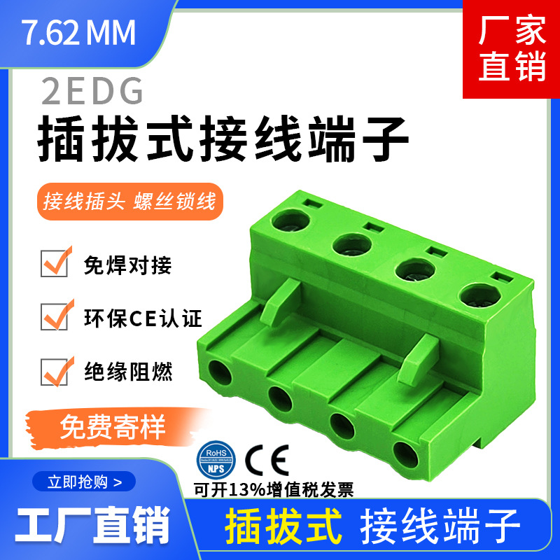 2EDG 7,62 мм вставной Клеммный штекер без сварки Стыковая проводка, внутренняя головка 2P-12P