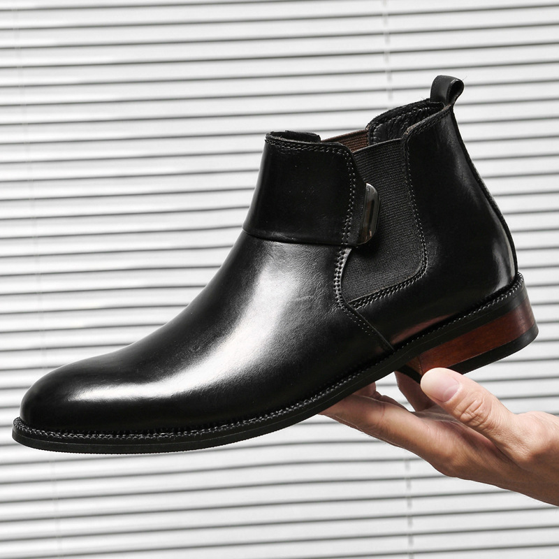 2188 Мужская обувь Ботинки Челси из натуральной кожи Короткие сапоги Осенне-зимние сапоги с высоким рукавом из воловьей кожи из дерева больших размеров Европейские и американские кожаные ботинки