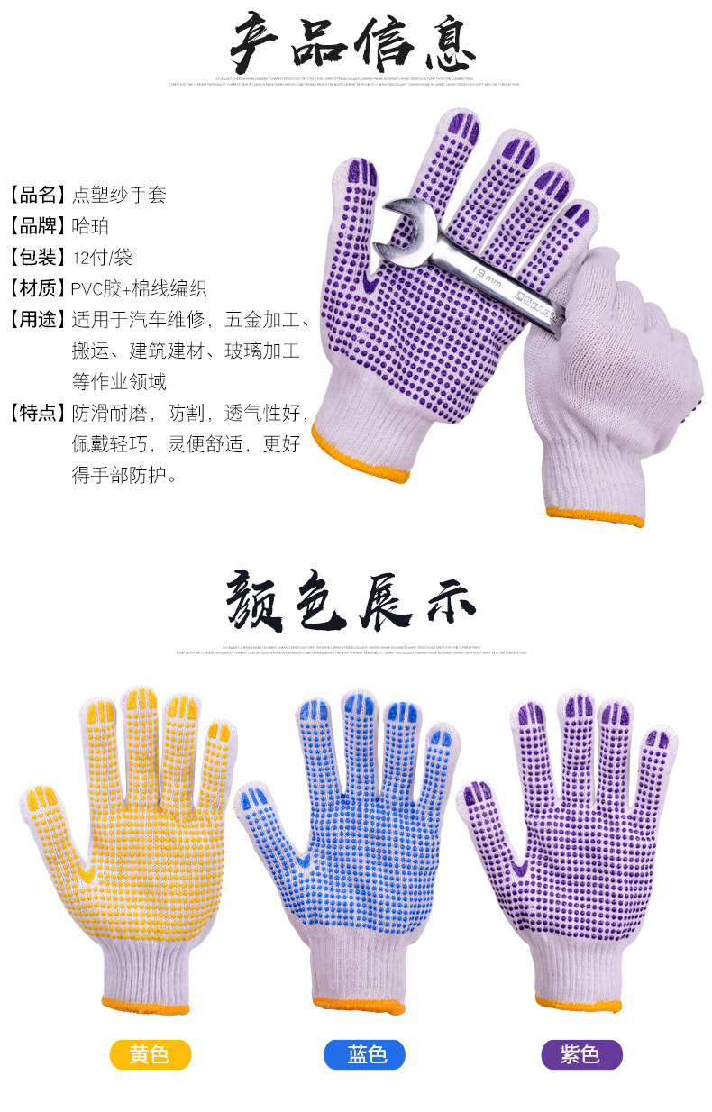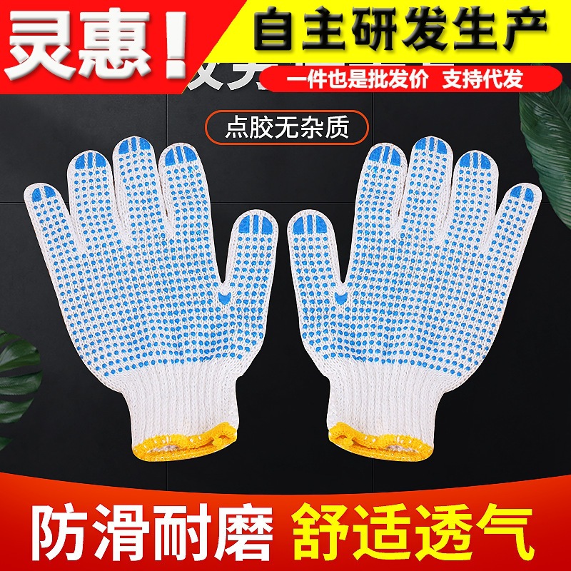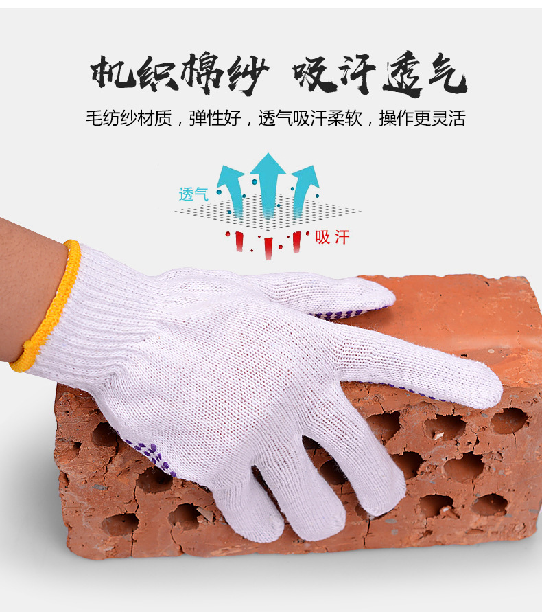 Перчатки износостойкие рабочие Нескользящие хлопчатобумажные утолщенные белые хлопчатобумажные нити нейлон Труд мужские работы на строительной площадке