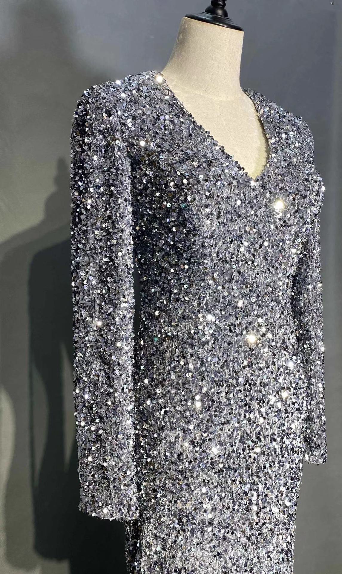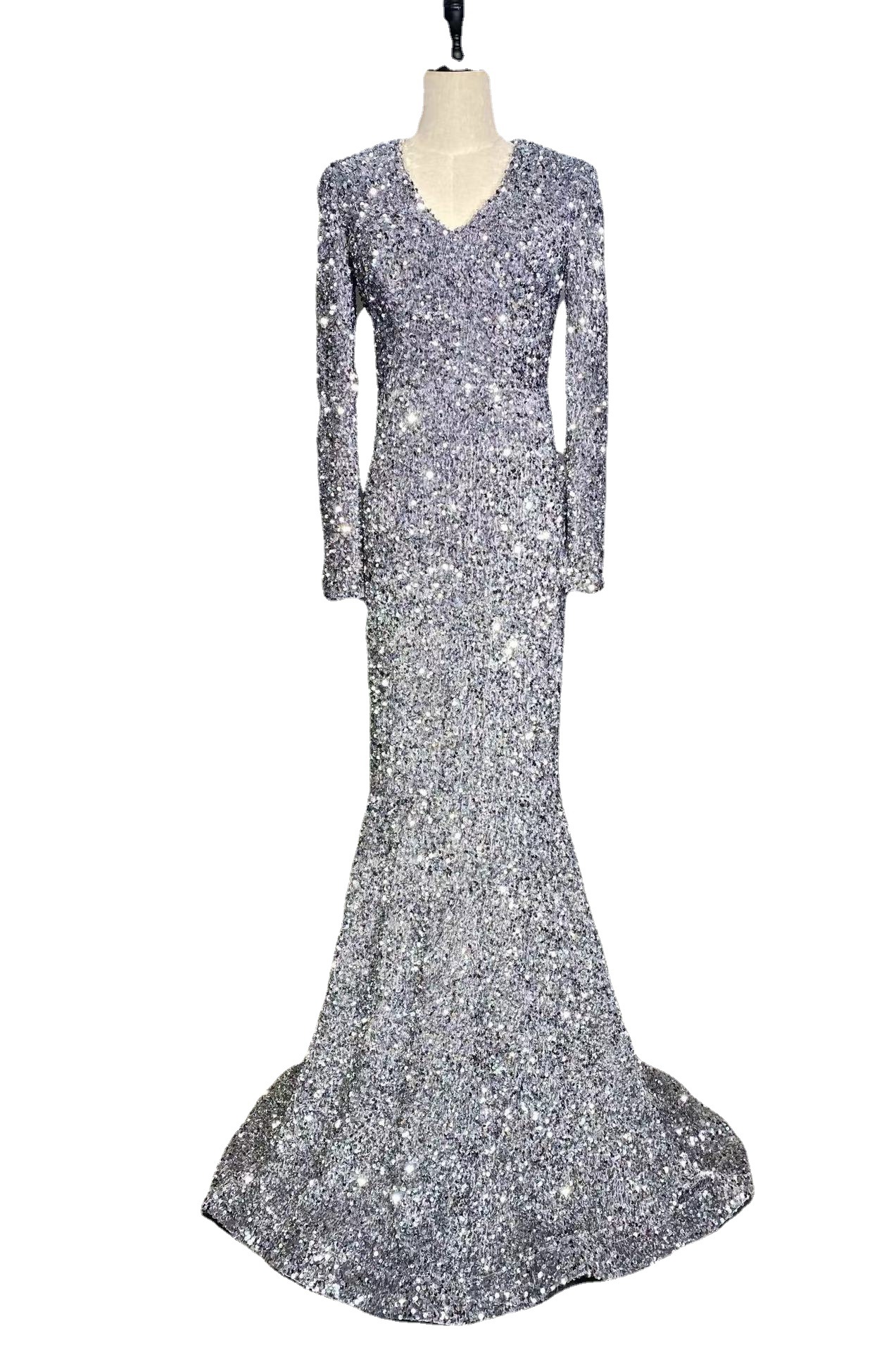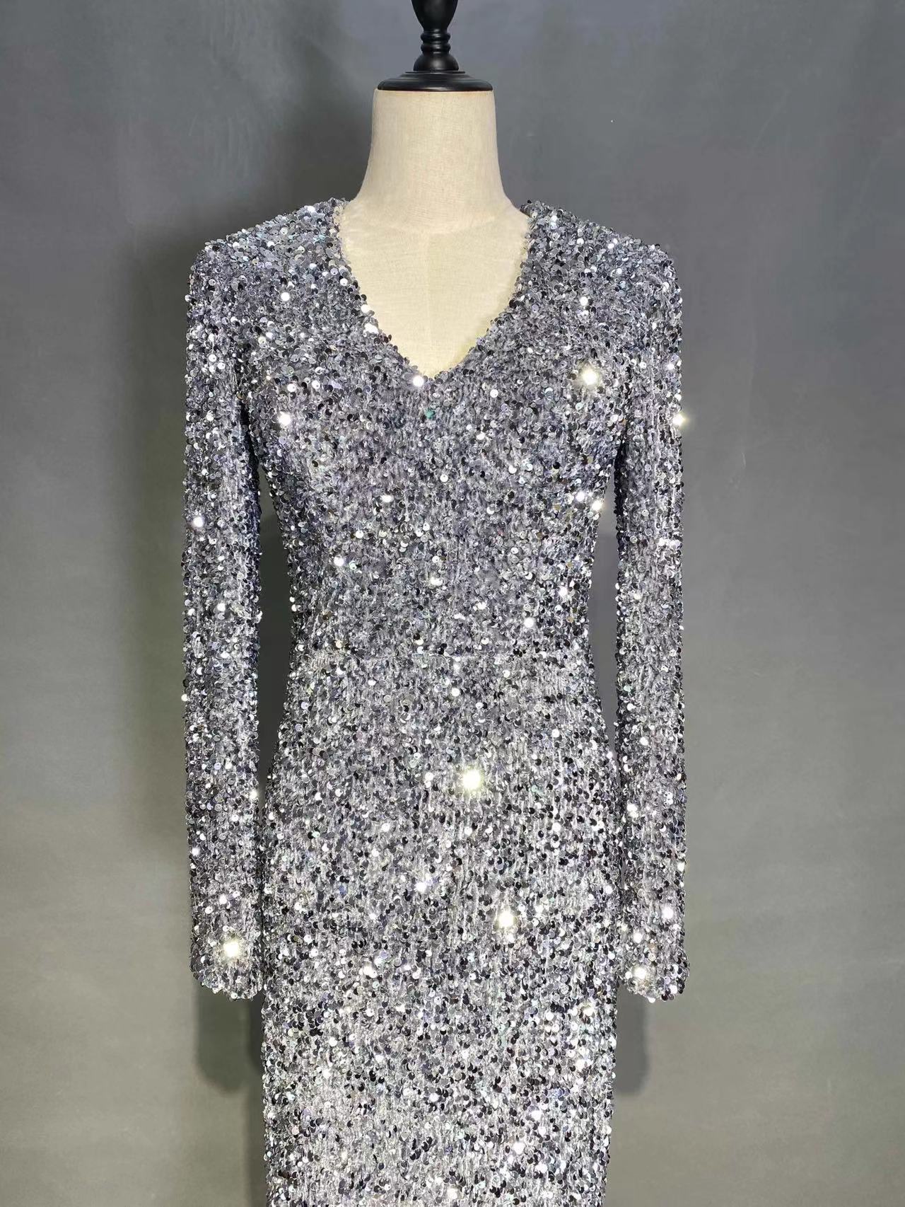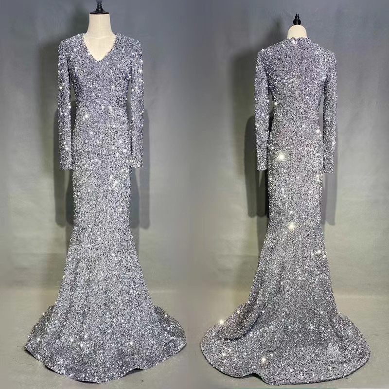 2023 трансграничное Новое расшитое блестками V-образным вырезом с длинным рукавом хозяин выступления банкет высокого класса сексуальный хвост обтягивающее вечернее платье