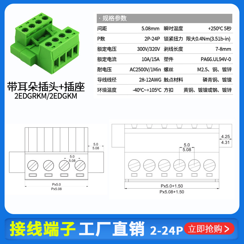 5,08 клемма Подключаемая клемма проводки 2EDGKM-5.08 мм медная клемма проводка вилка штекер розетка