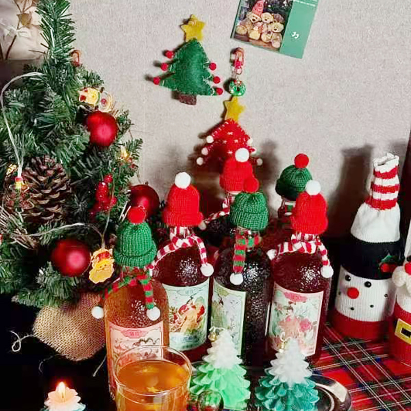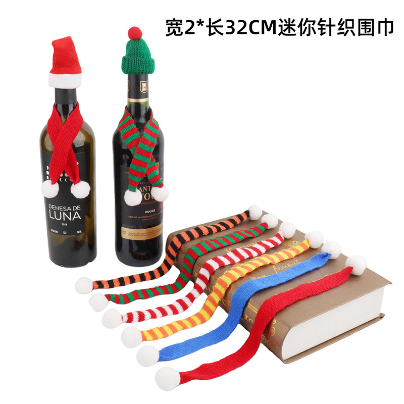 Миниатюрные рождественские шапочки, маленькие шарфы, вязаные рождественские шапочки, маленькие шапочки, колпачки для бутылок в виде ножа и вилки, маленькие рождественские украшения для шеи в виде шарфов