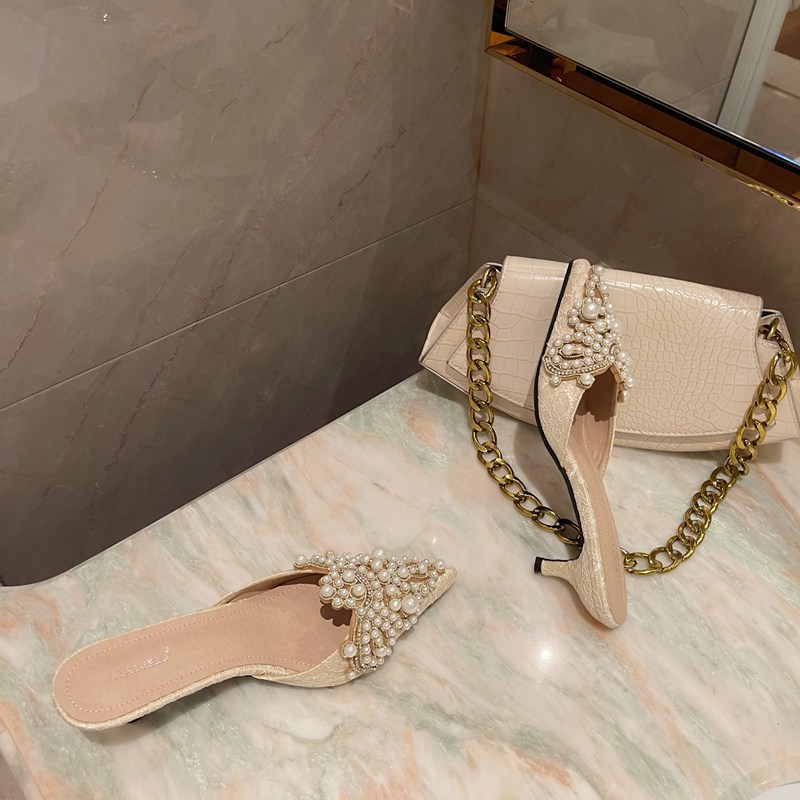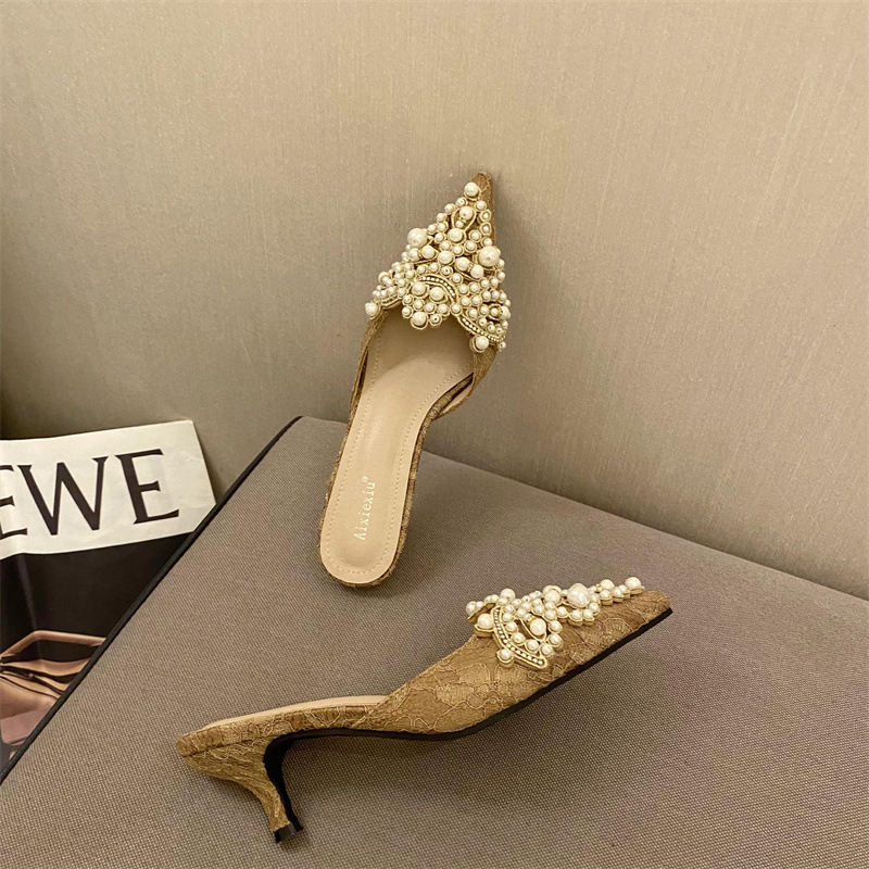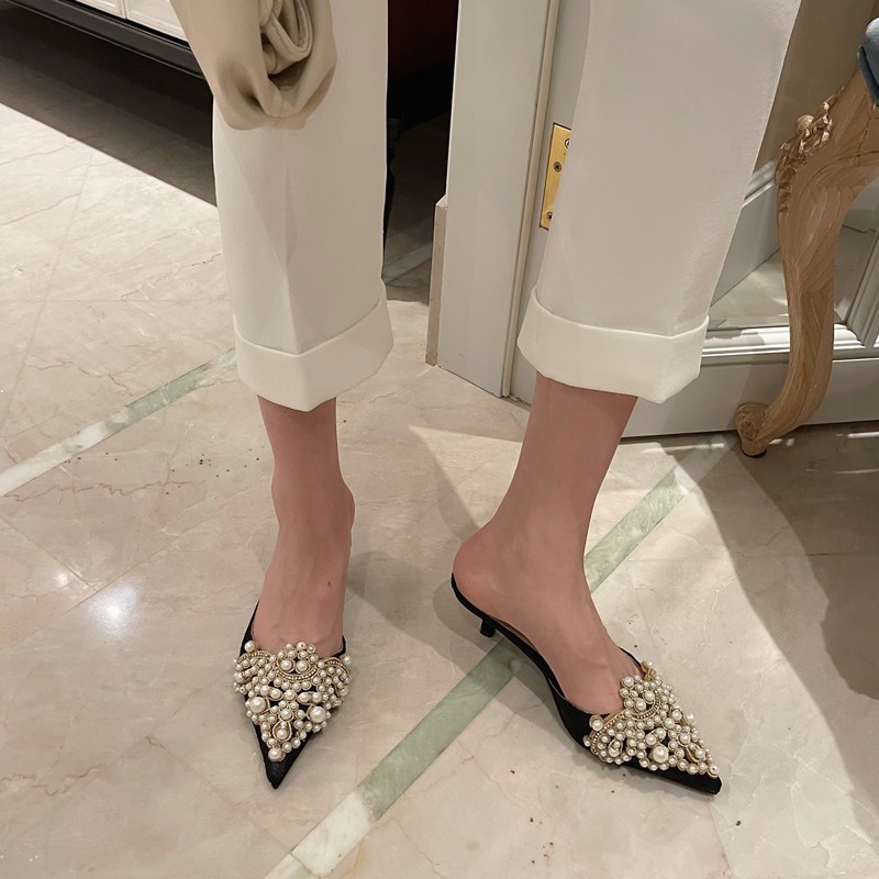 2023 остроконечные Half Drag с тапочками Baotou в европейской и американской чистой красной внешней торговле 42 Стразы больших размеров с сандалиями
