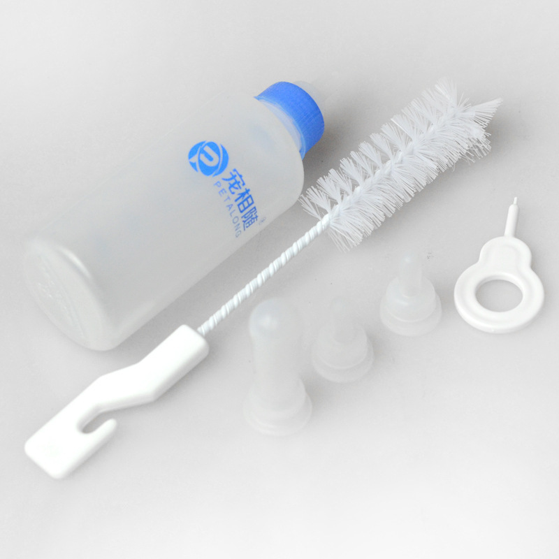 产品特点:1、采用优质原料制造,耐高温,耐腐蚀,安全健康;2、高仿真奶嘴,亲肤柔软,富含弹性,给宠物宝贝们母乳般的呵护;43、刻度方设计,方便兑奶