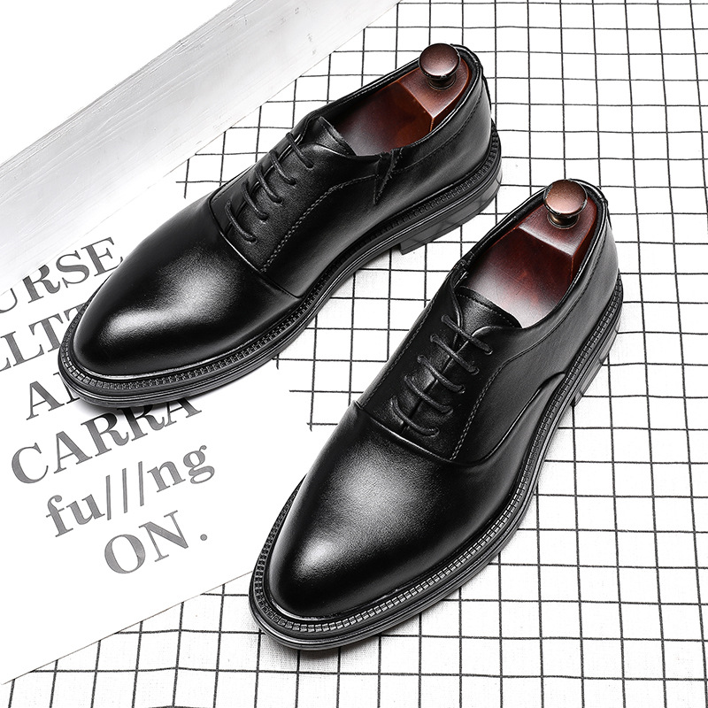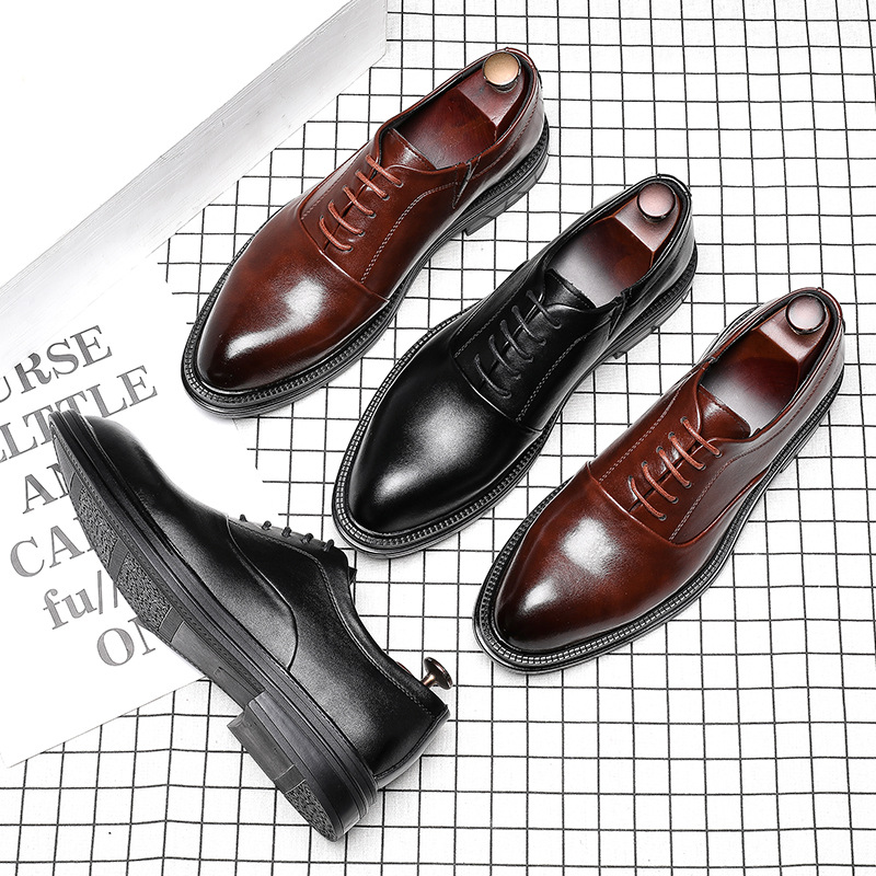 Мужские кожаные туфли деловые официальные кожаные туфли мужские молодежные британские остроносые свадебные туфли в Корейском стиле Повседневная обувь для жениха 28566-G