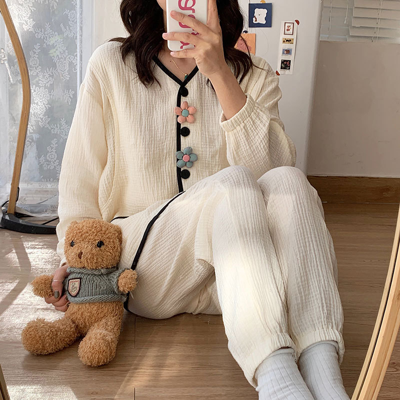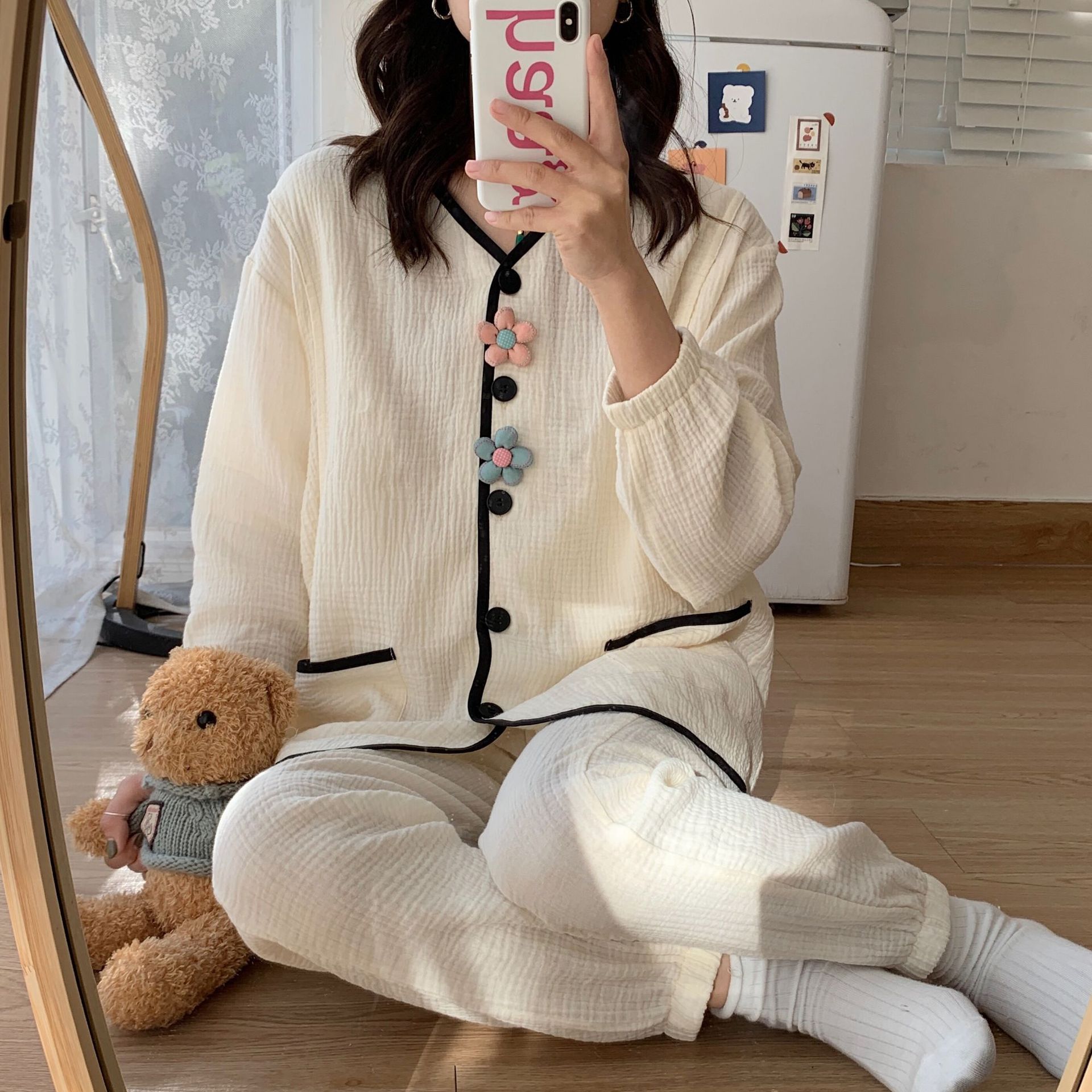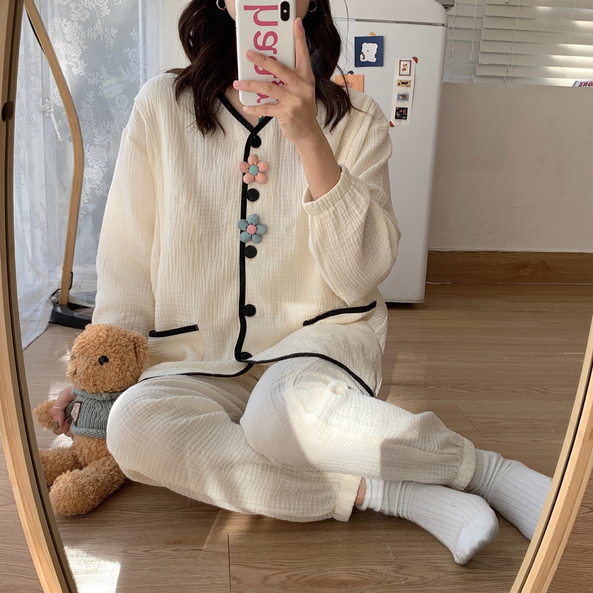 [In Stock 8811] Весенне-летняя хлопковая марлевая ежемесячная одежда тонкие пижамы для беременных женщин для кормления Послеродовая Домашняя одежда костюм