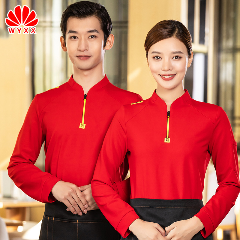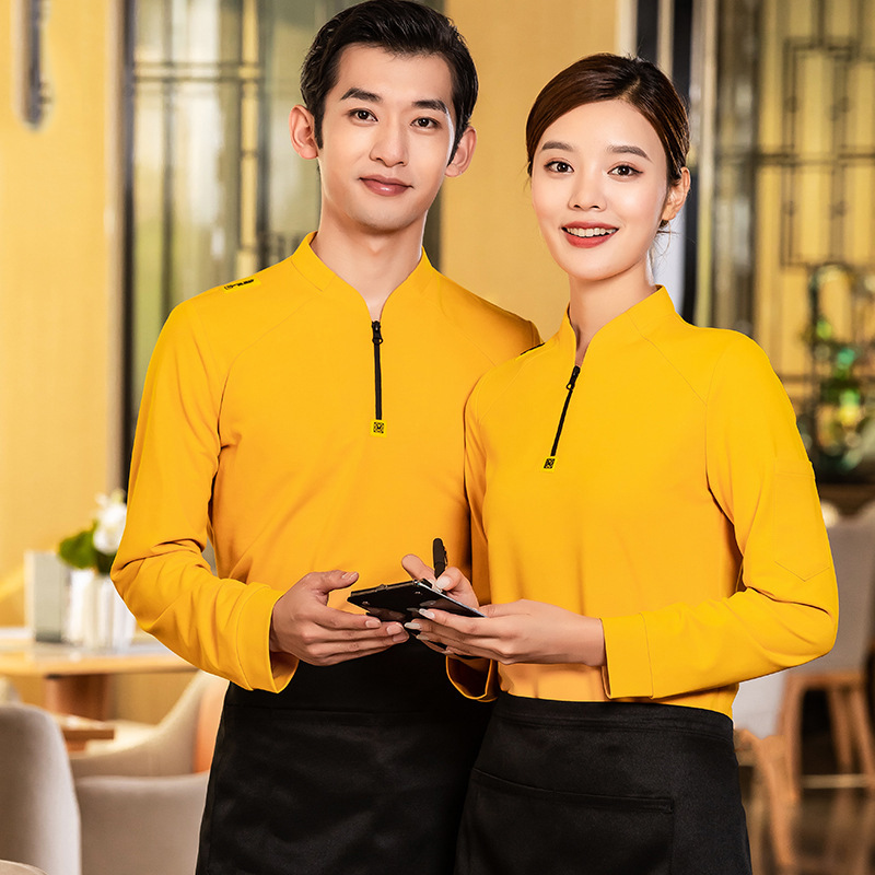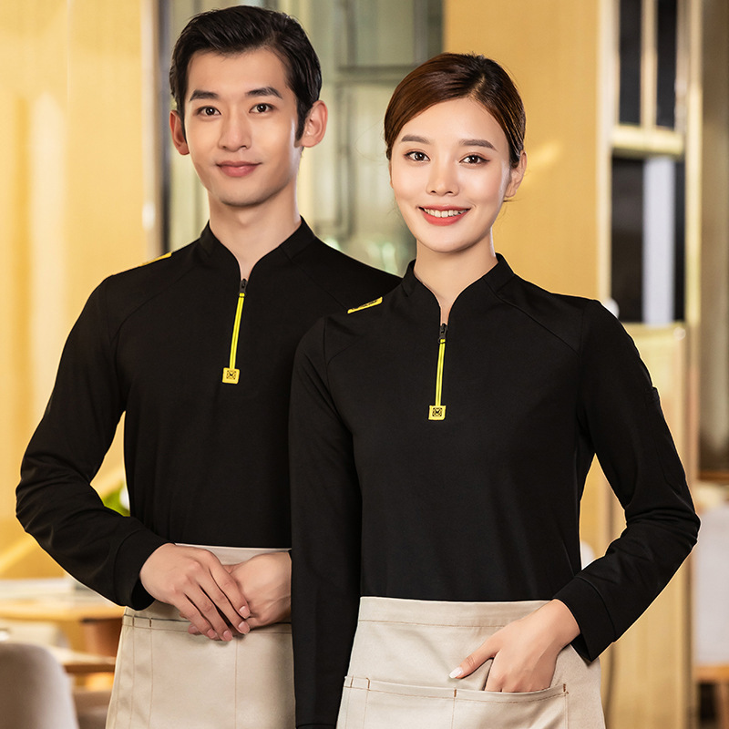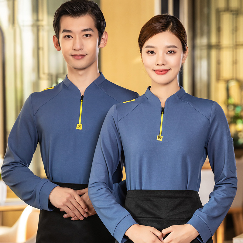 Классовая одежда Свитер в наличии Печать логотипа Кейтеринг Ресторан Hotpot Отель Официант Рабочая одежда Бейсбольная одежда с длинным рукавом Куртка