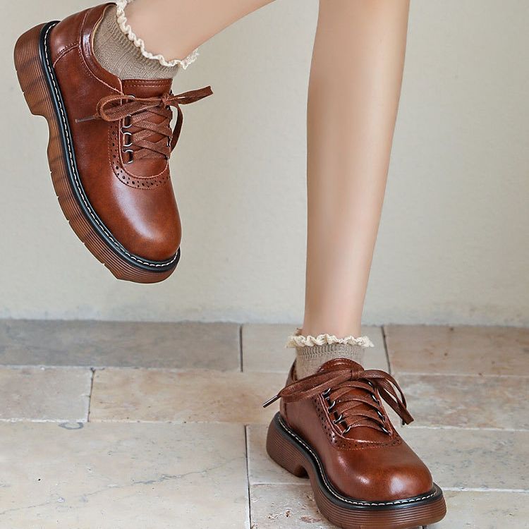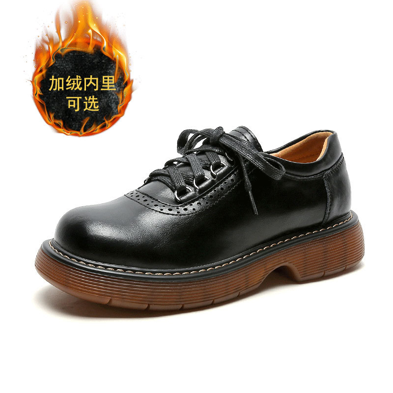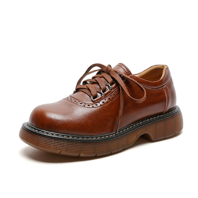 Маленькие кожаные туфли с круглым носком, женские однослойные туфли в британском стиле, 2023, в японском стиле, коричневые туфли из натуральной кожи в стиле ретро