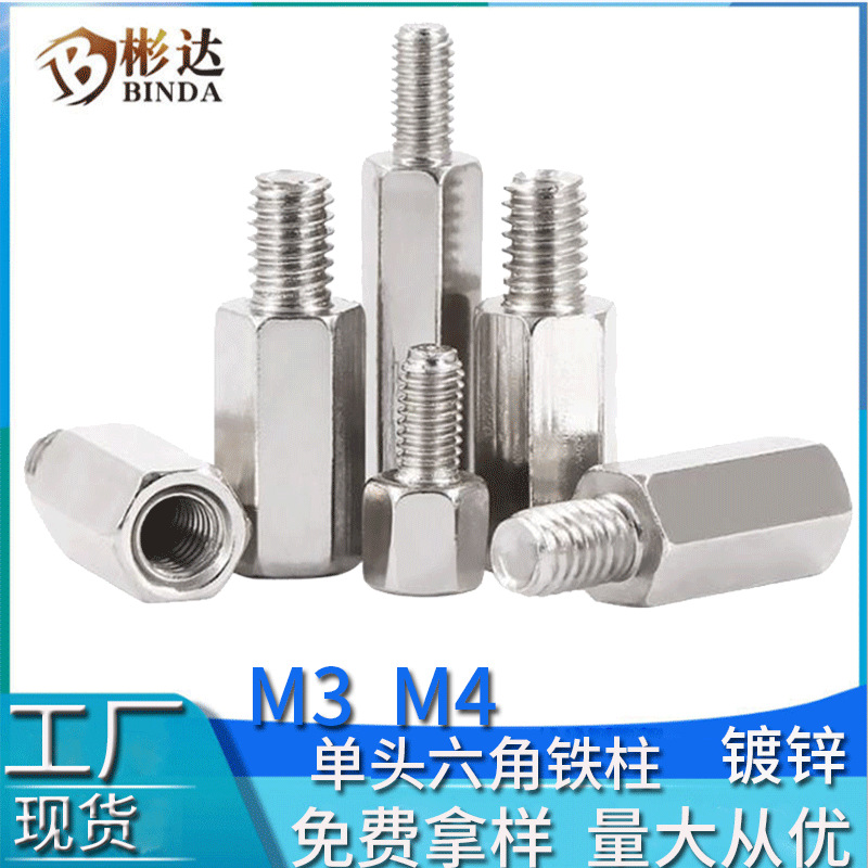 Опорная стойка из железа, односторонняя, шестигранная, с наружным шестигранником, с резьбой M3, соединительная стойка M4, оцинкованный шестигранный стержень с внешней резьбой, однопроходный шестигранный стержень