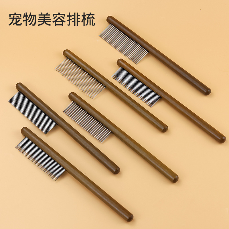 Гребень для домашних животных с деревянной ручкой Уход за волосами для кошек и собак Плавающие волосы Расческа для удаления длинных волос Гребень для удаления блох Гребень для зубных рядов