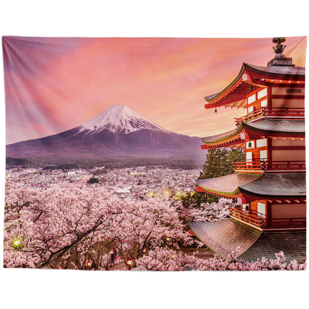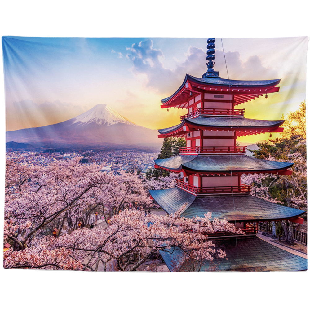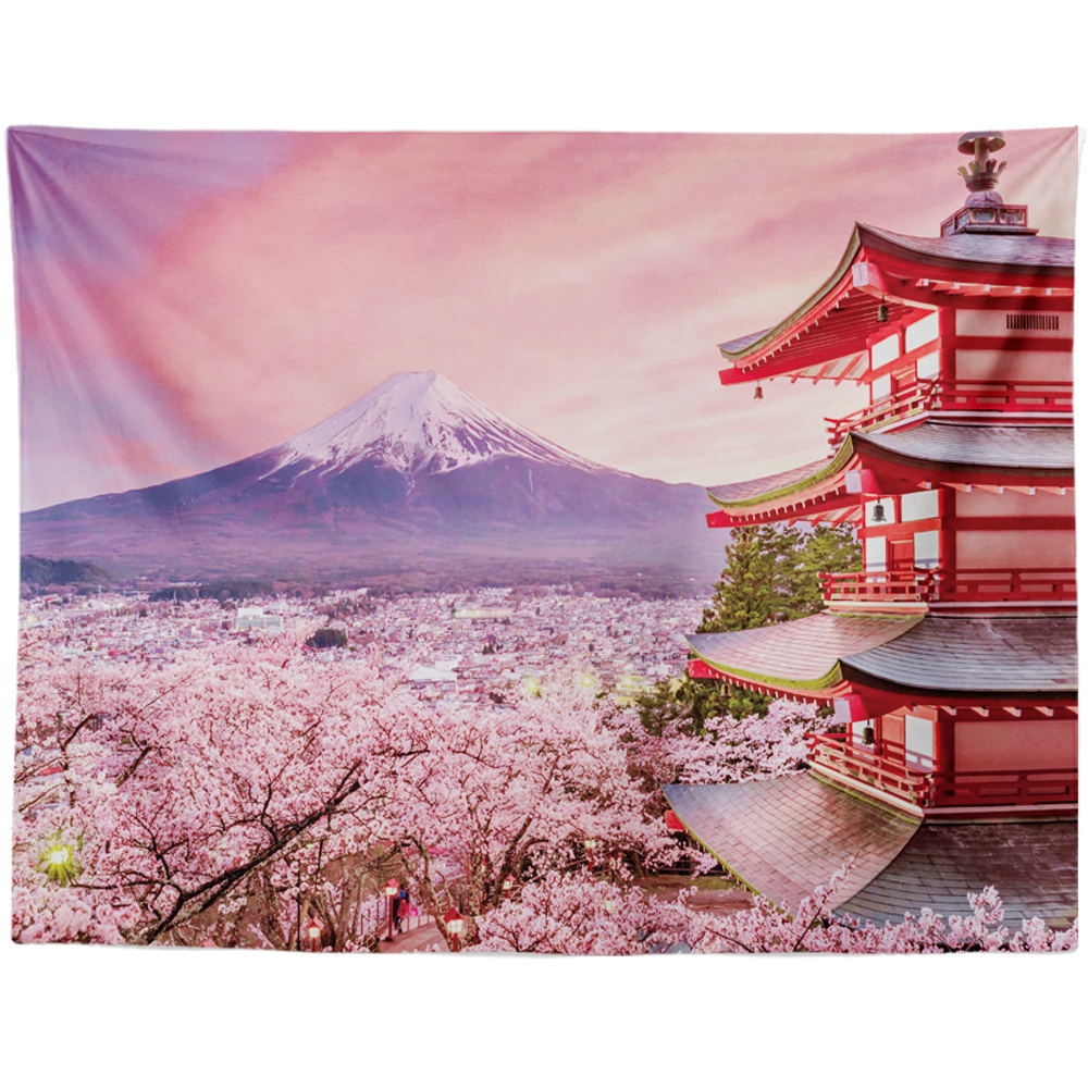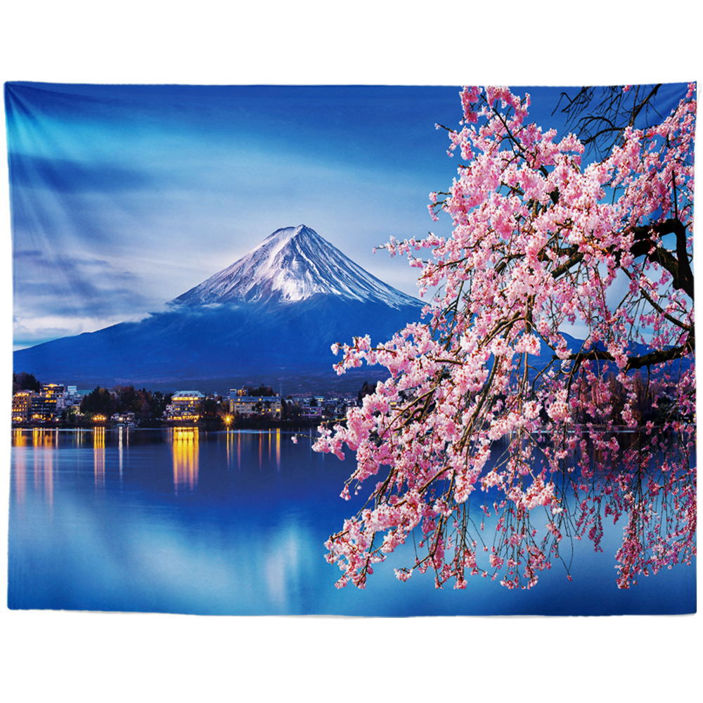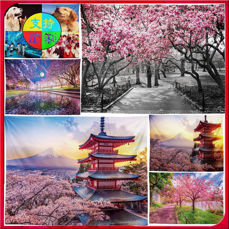 Трансграничные горячие продажи вишневого цвета, Фигурное крепление, гобелены с принтом Fuji, могут быть сделаны для клиента, фон с изображением, настенная гобелен, лента