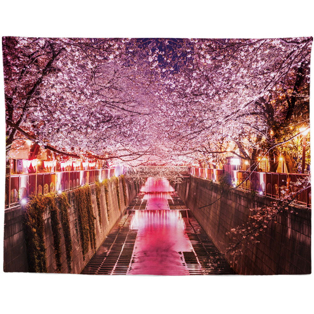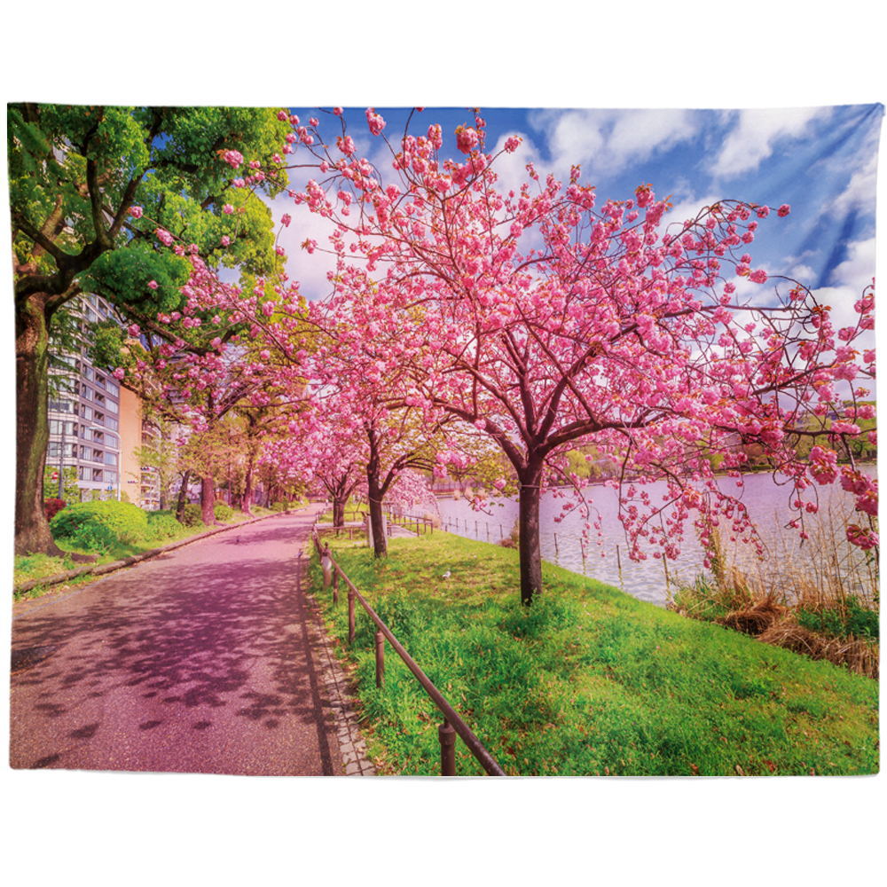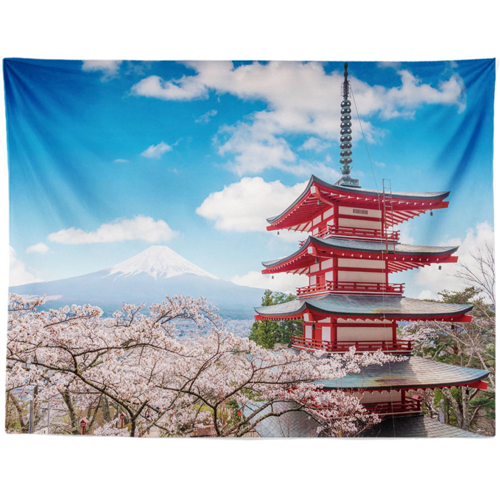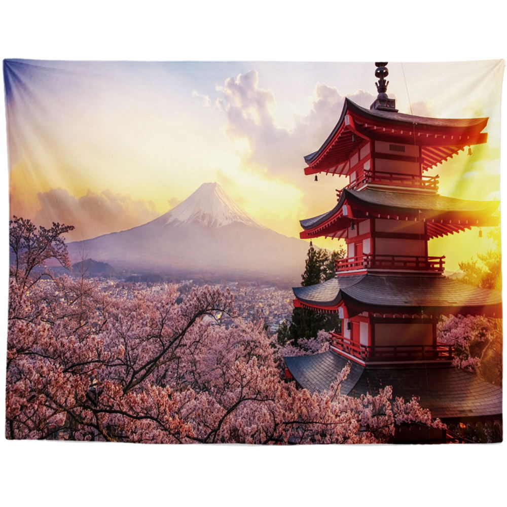 Трансграничные горячие продажи вишневого цвета, Фигурное крепление, гобелены с принтом Fuji, могут быть сделаны для клиента, фон с изображением, настенная гобелен, лента