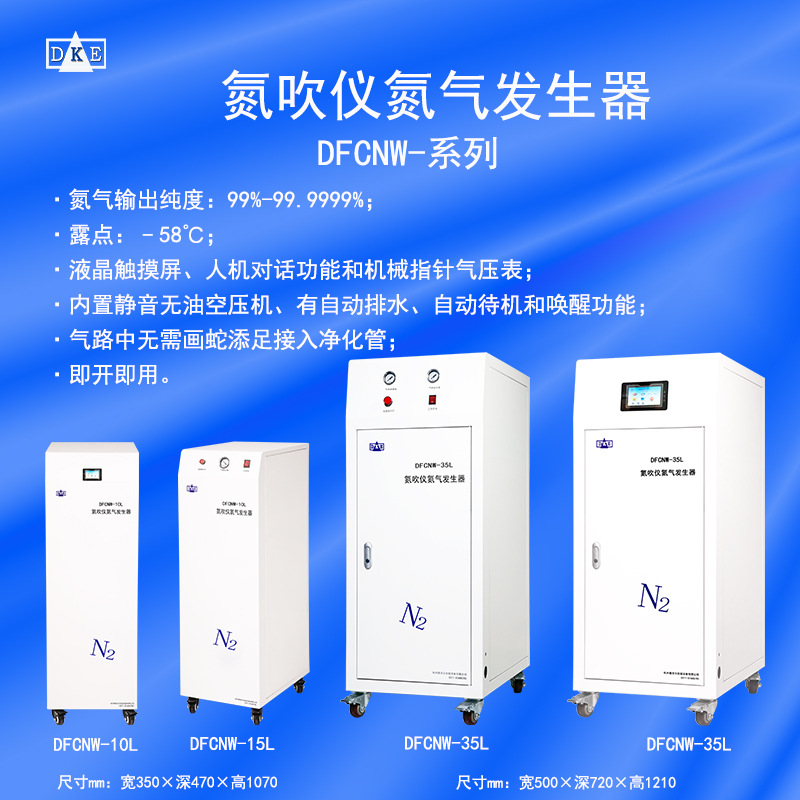 氮吹仪氮气发生器采用世界先进的材料和气相色谱分离技术,直接从空气中提取高纯度氮气。它是纯物理分离法,完全消除电化学分离方式腐蚀仪器的隐患,具有使用安全方便、寿命长、可靠性高、操作简单等优点。所产生气体流速稳定,内置耐用型合成碳分子筛,使氮气纯化更彻底,产出的氮气纯度更高。氮发生器操作简单只要一按开关,便可以源源不绝的生产出高纯度的氮气,运行稳定可靠,可以24小时无人值守,在无需任何监管和最低保养的情况下无故障地运行,它替代了传统的氮气罐。从安全性能方面来考虑氮气发生器以低压状态产生氮气,替代高压瓶或液氮罐。