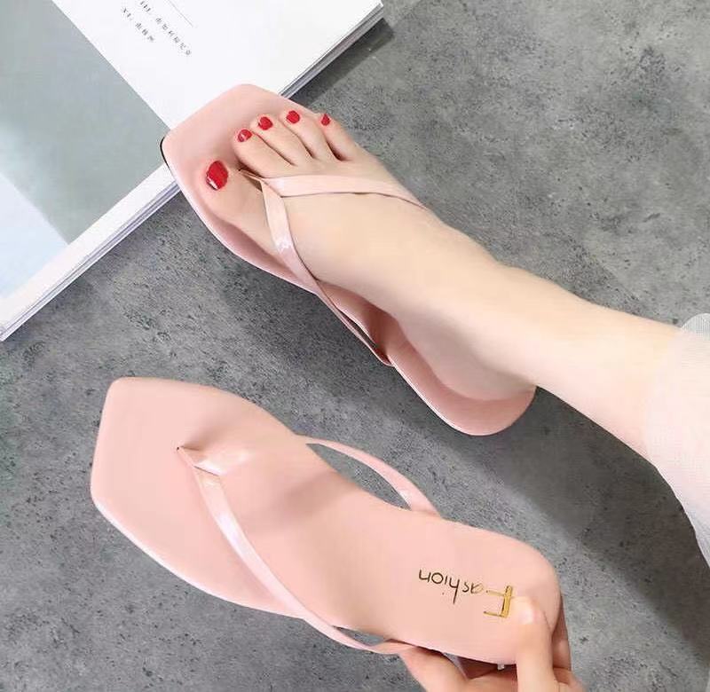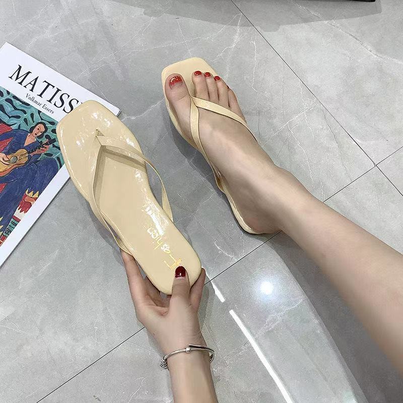 Сандалии и тапочки для студенток Новые тапочки кибер-знаменитостей Приморская пляжная обувь Универсальные квадратные шлепанцы в стиле Instagram