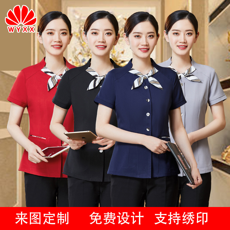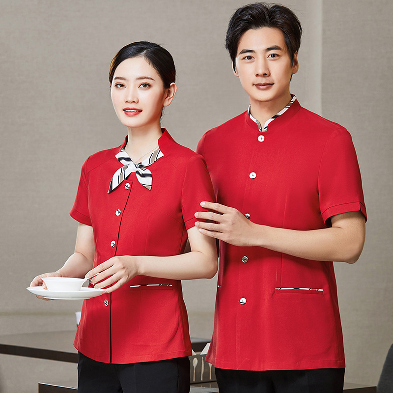 Китайский Ресторан рабочая одежда официанта с короткими рукавами женская гостиничная оснастка для общественного питания горячий горшок ресторан отель чайный домик летняя одежда