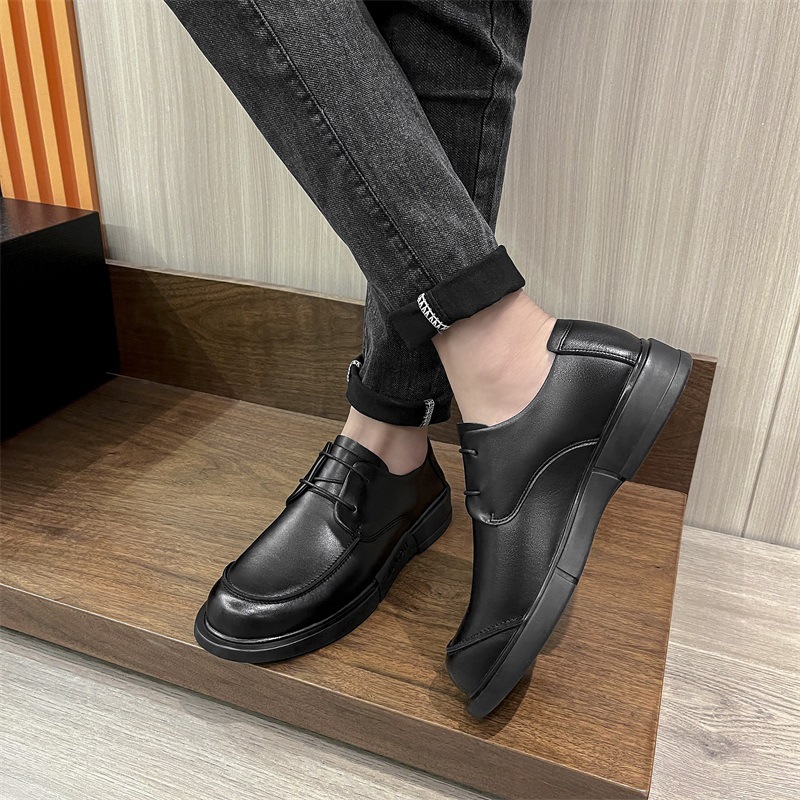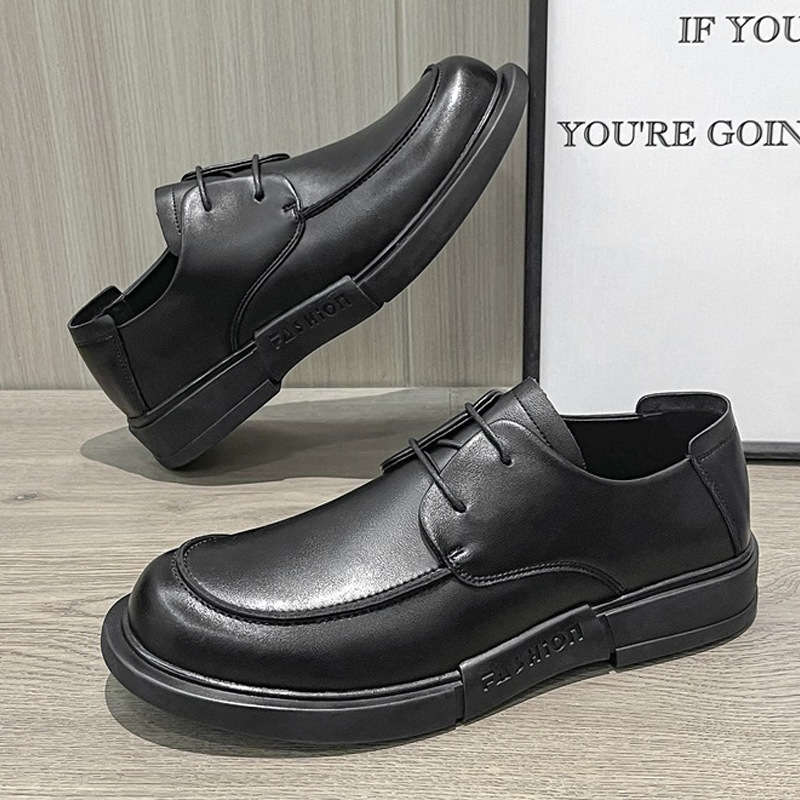 Мужская обувь, повседневная кожаная обувь, Уличная обувь, Весенняя деловая повседневная обувь на шнуровке с низким верхом, туфли на плоской подошве с круглым носком из воловьей кожи