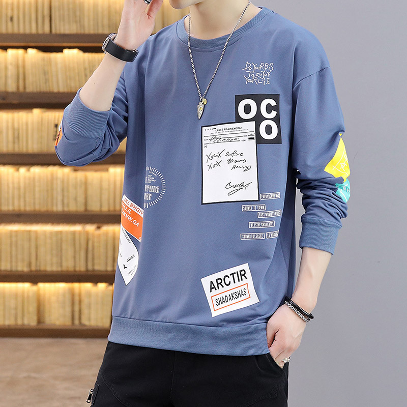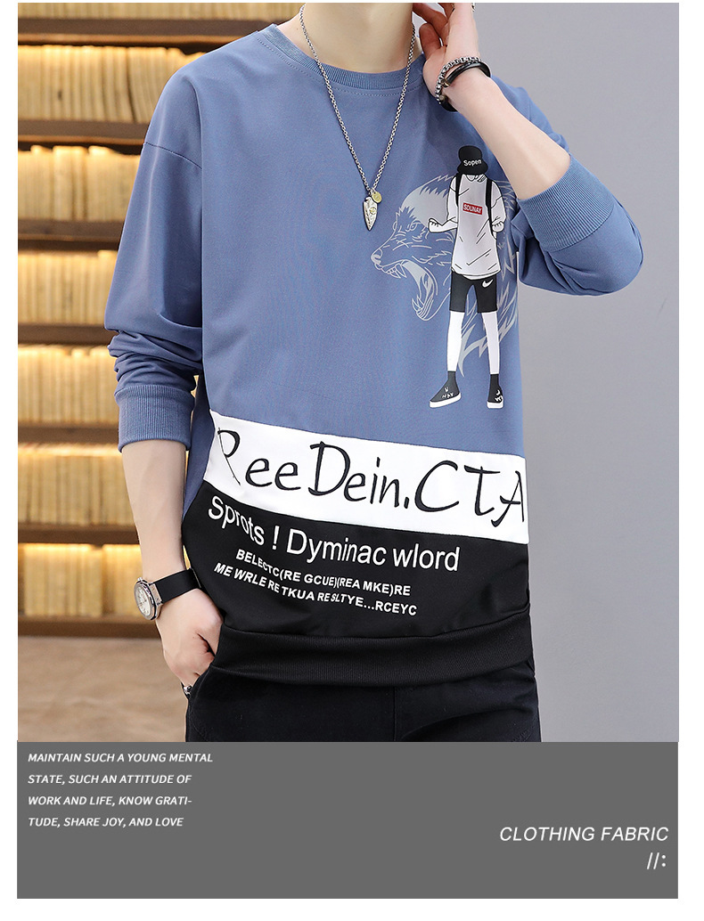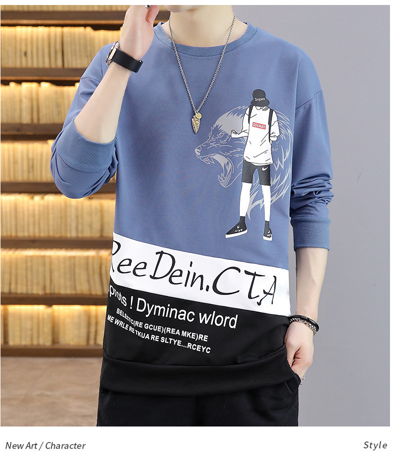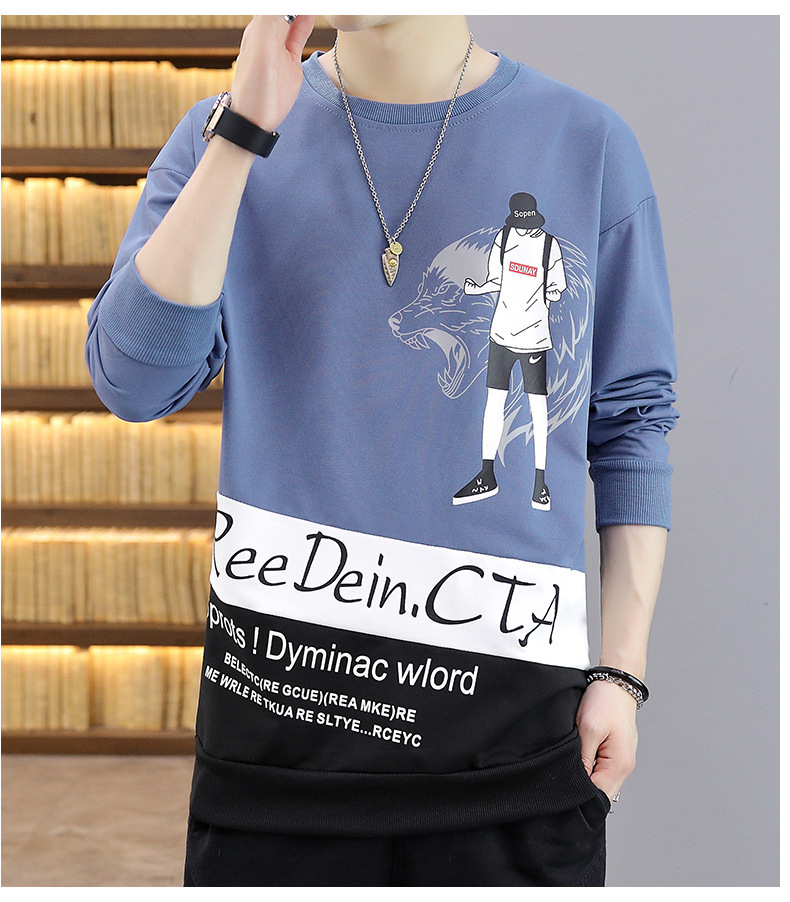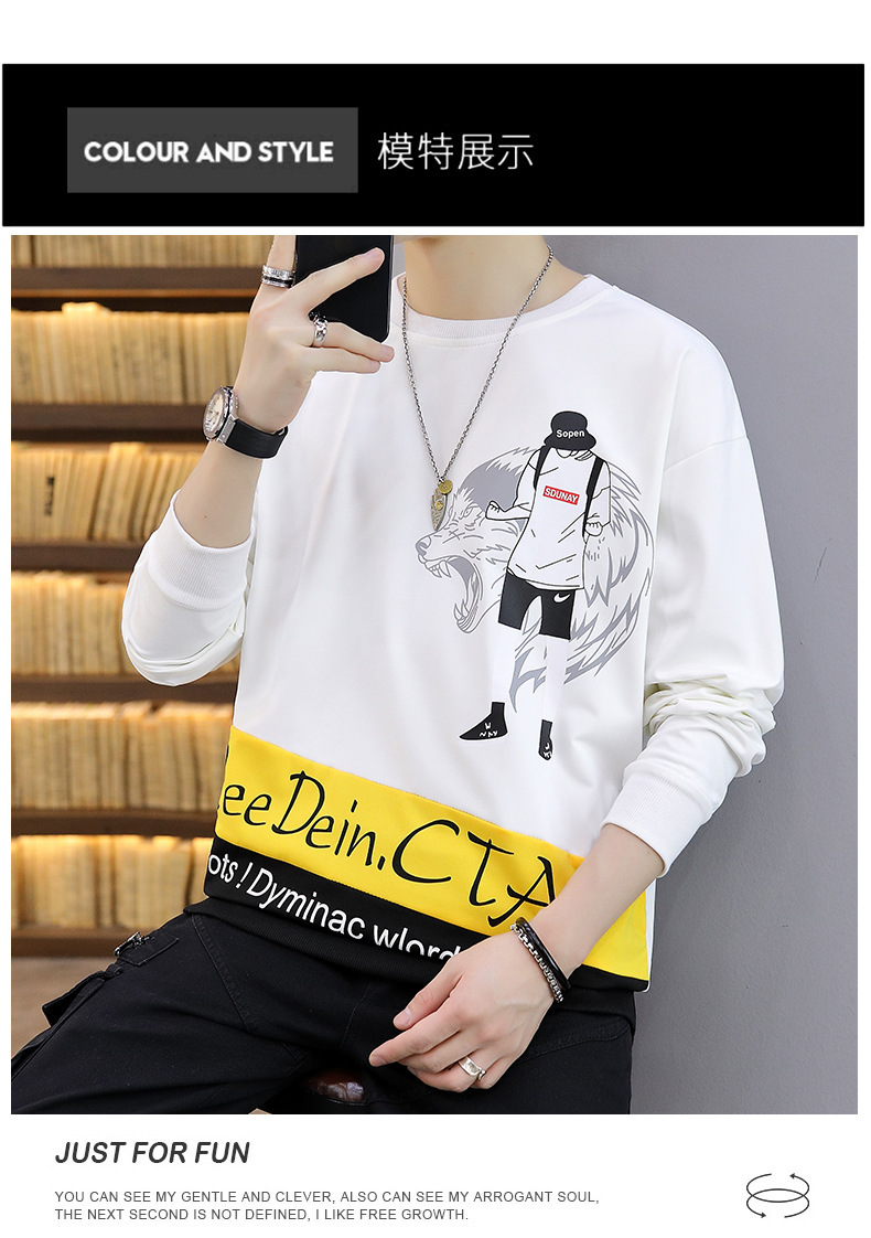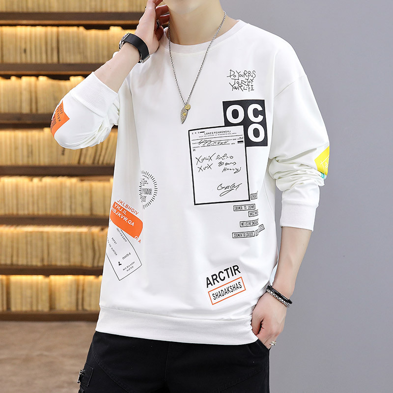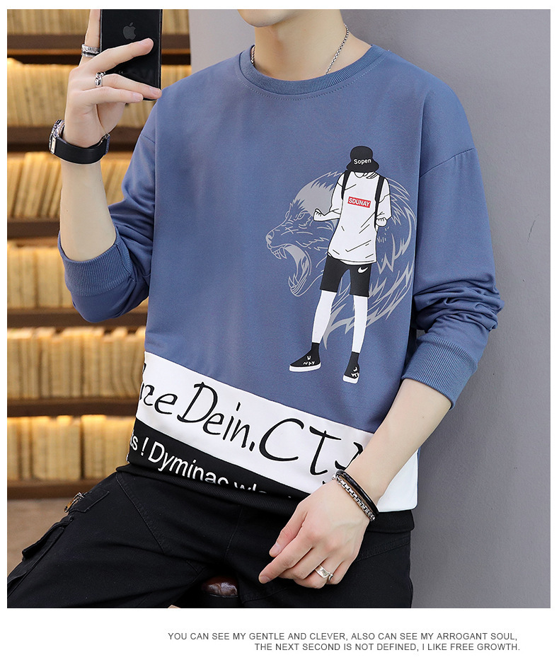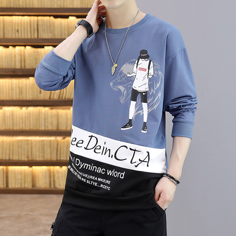 Тонкий свитер с длинным рукавом мужской 2023 весна и осень Новый круглый вырез с принтом корейская мода повседневная одежда Базовая рубашка оптом