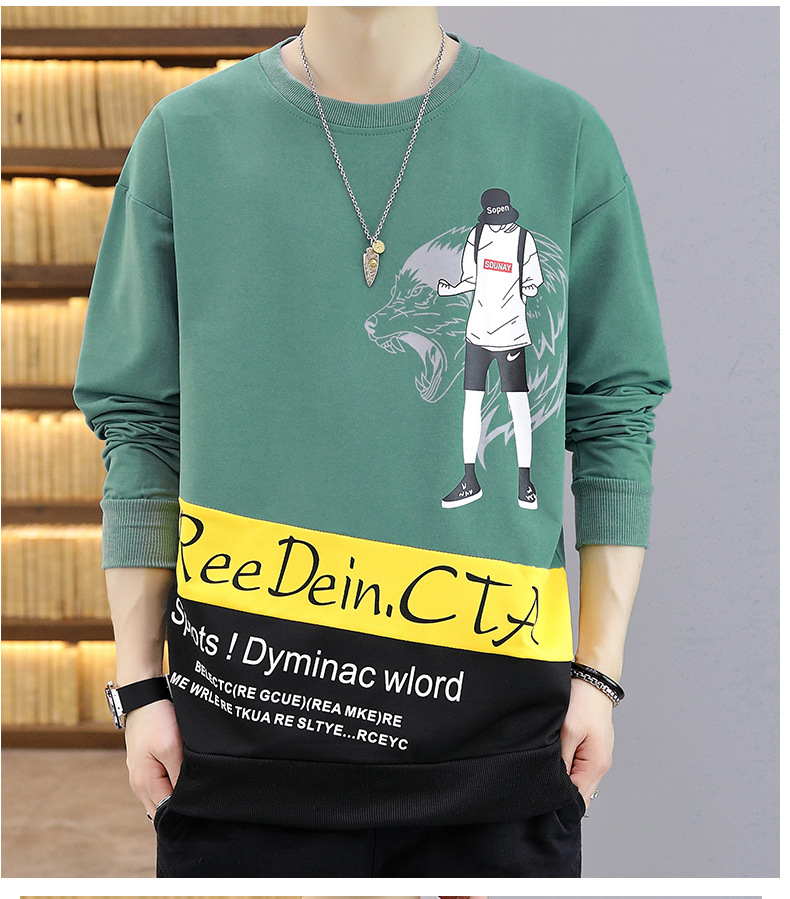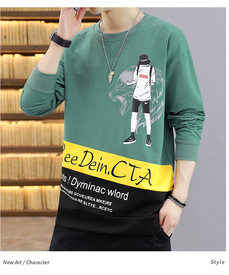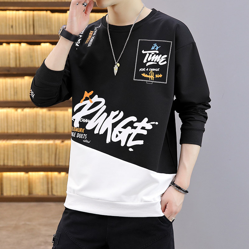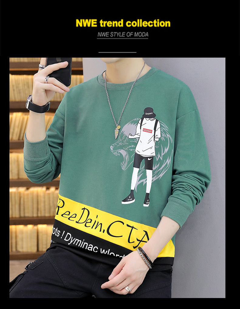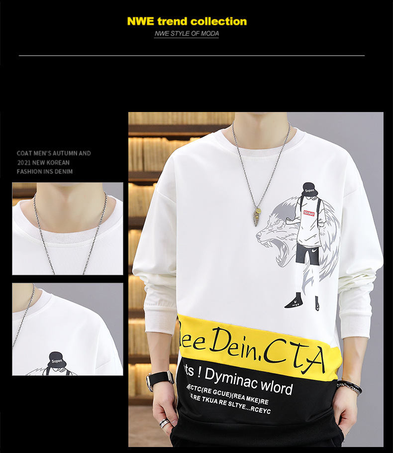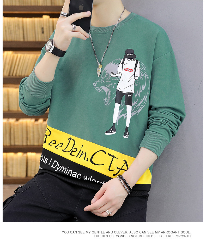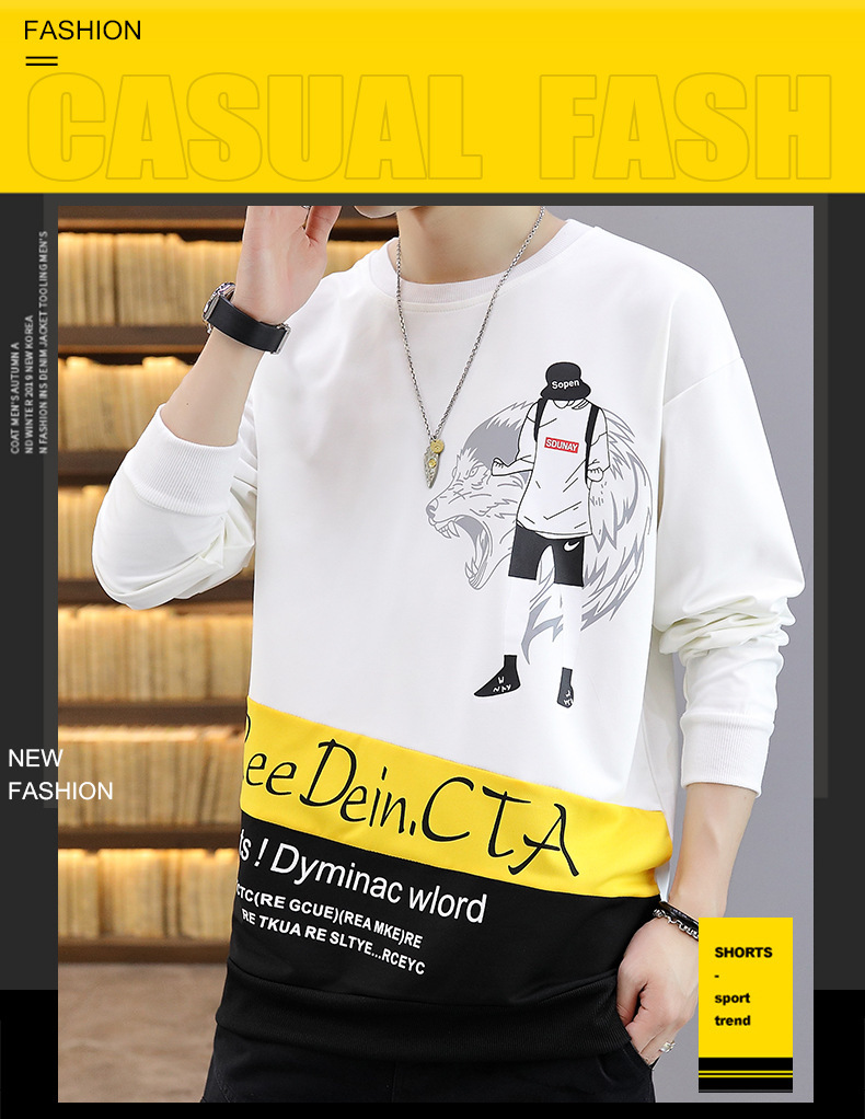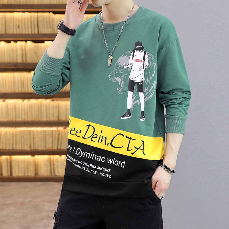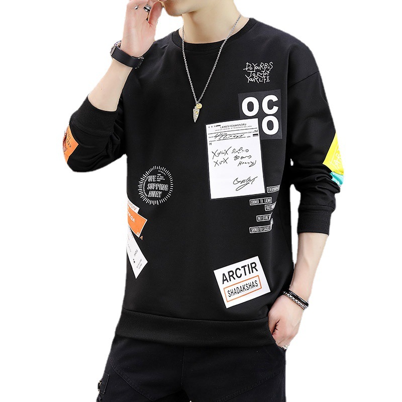 Тонкий свитер с длинным рукавом мужской 2023 весна и осень Новый круглый вырез с принтом корейская мода повседневная одежда Базовая рубашка оптом
