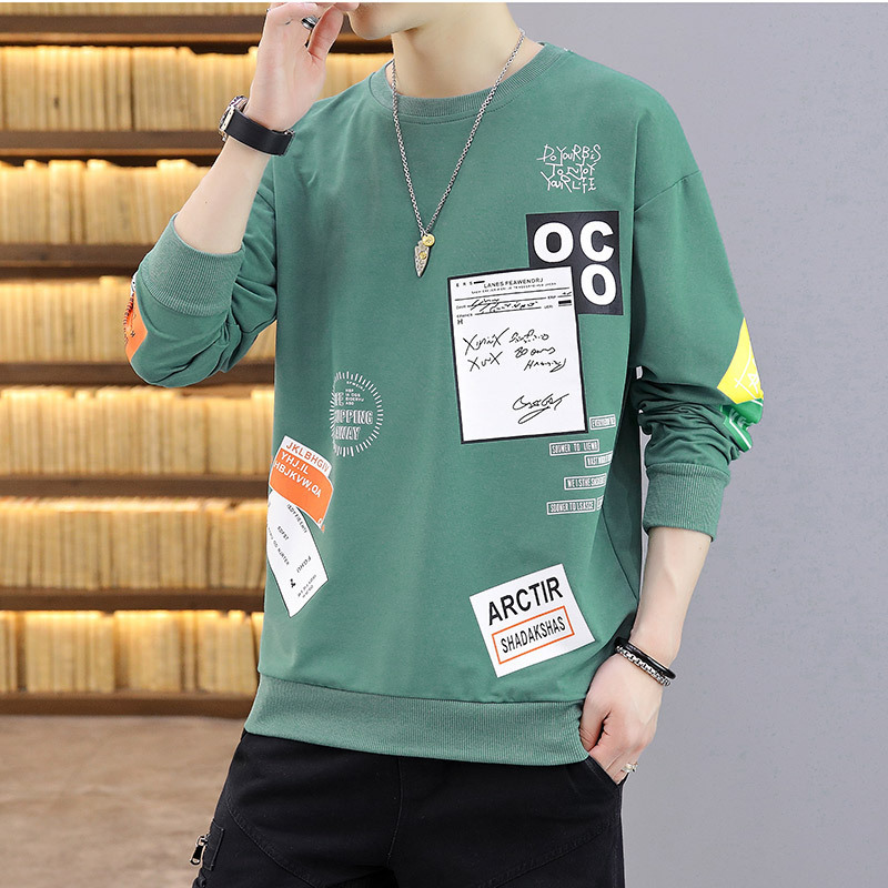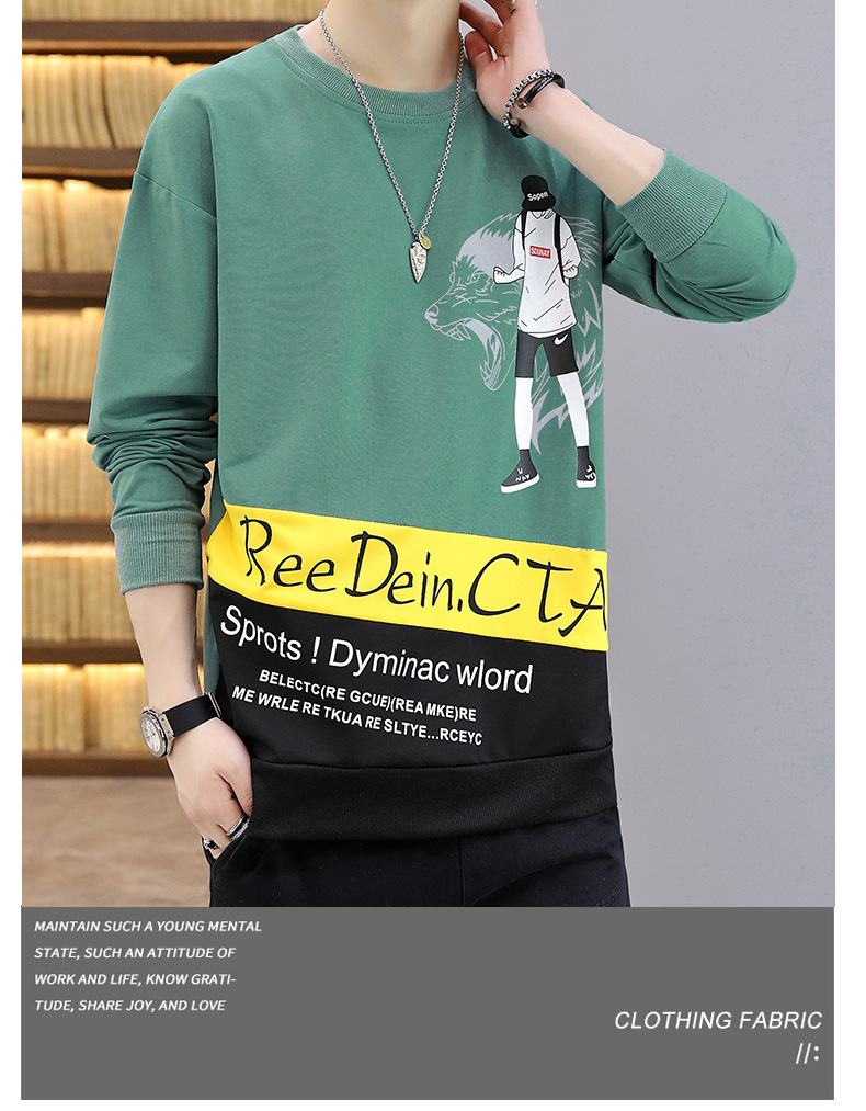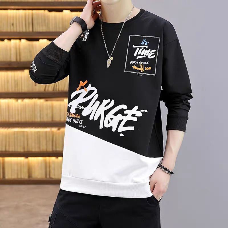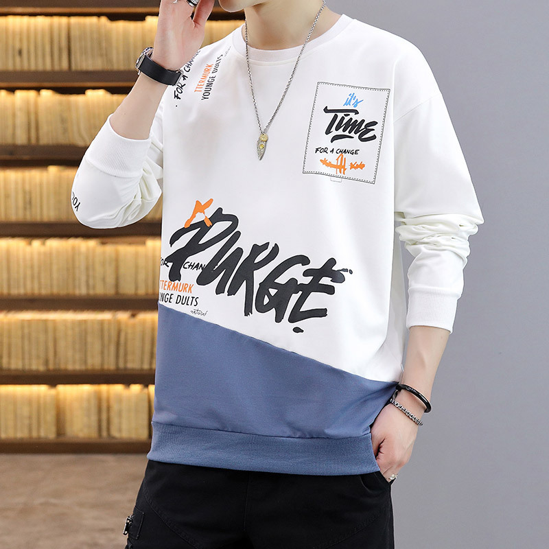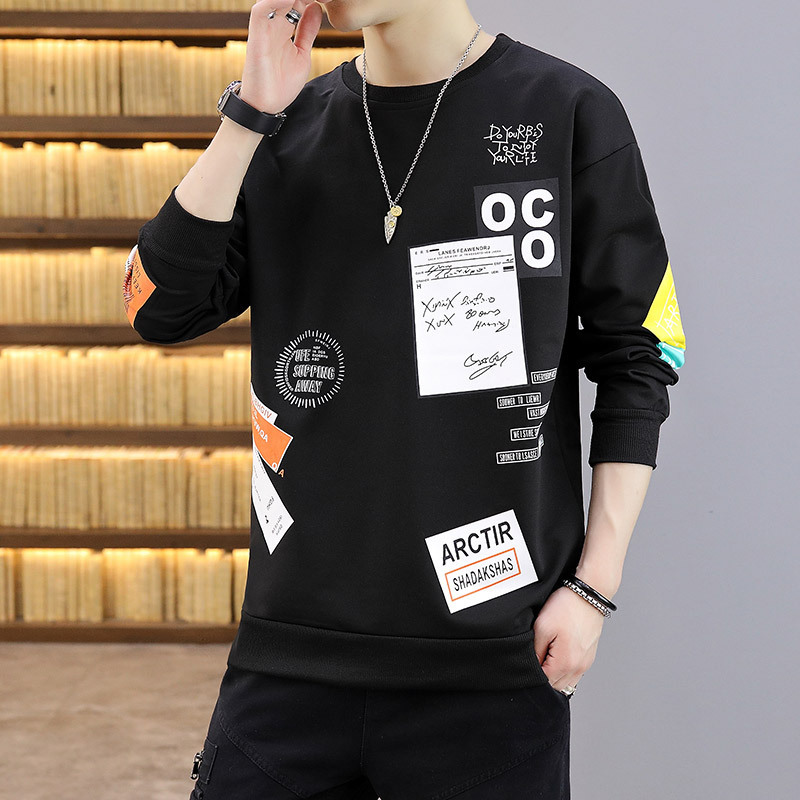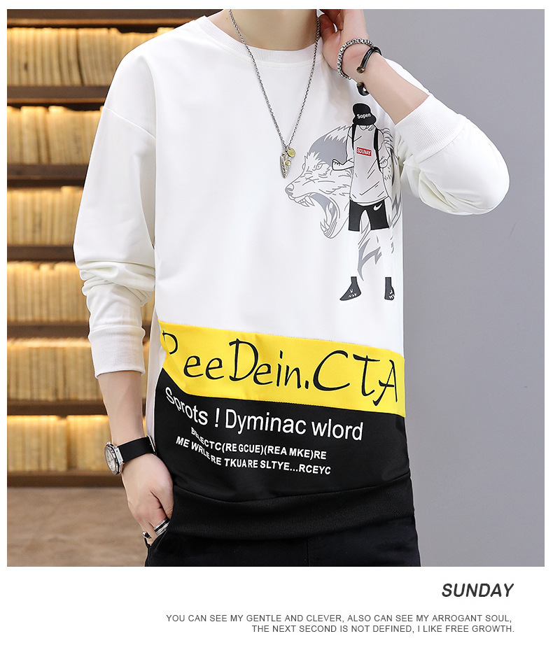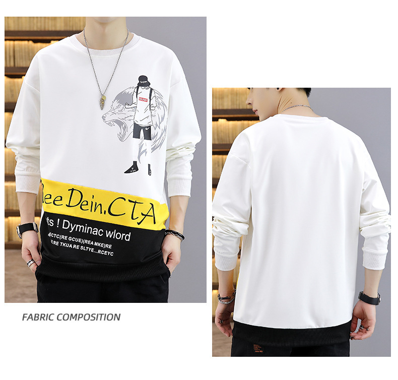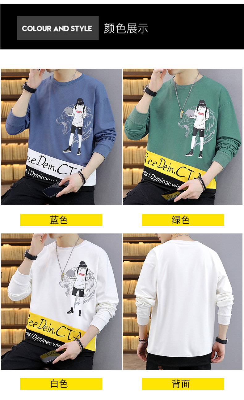 Тонкий свитер с длинным рукавом мужской 2023 весна и осень Новый круглый вырез с принтом корейская мода повседневная одежда Базовая рубашка оптом
