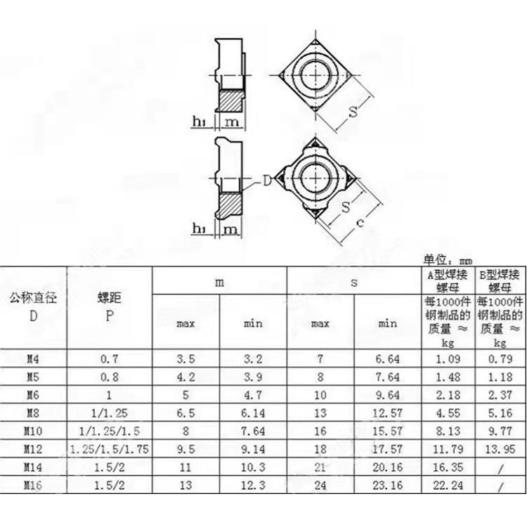 GB13680四角螺帽M4M5M6M8M10M12四方点焊螺母A型B型 四方焊接螺母