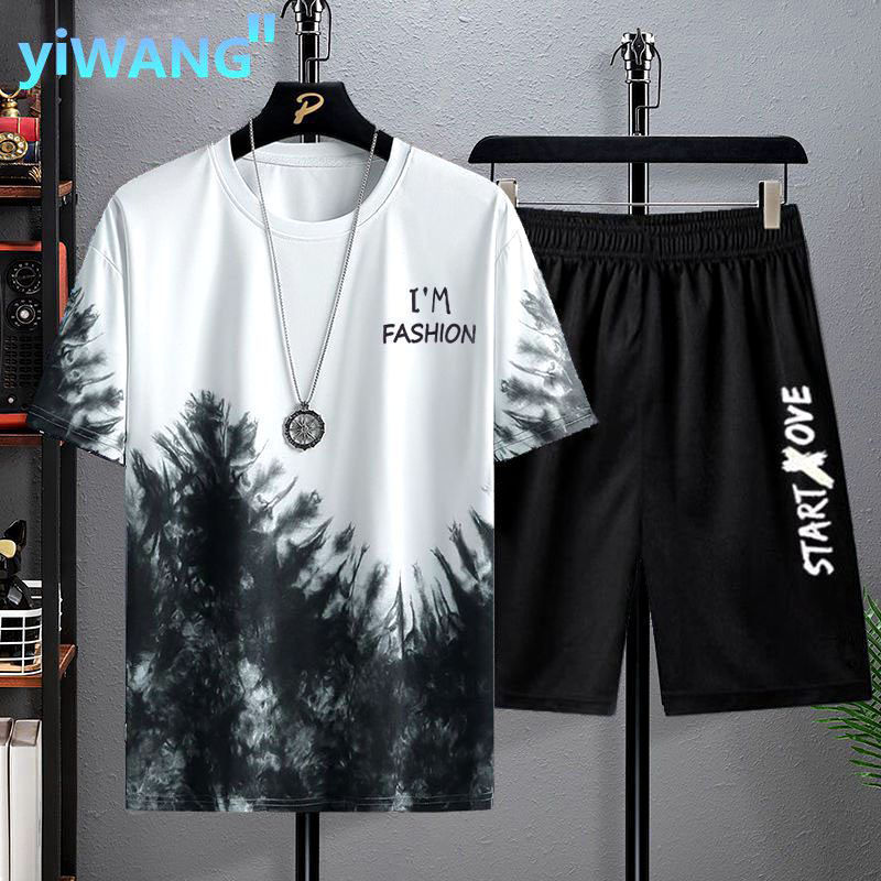Летний мужской 2023 новый модный брендовый костюм с короткими рукавами в Корейском стиле топ с короткими рукавами Повседневная модная футболка с круглым вырезом