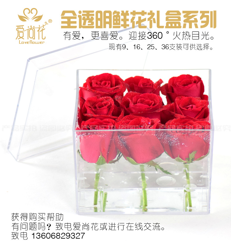 Фабрика прямые поставки акриловая высококачественная прозрачная Цветочная подарочная коробка квадратная Цветочная Подарочная коробка вечная Цветочная подарочная коробка