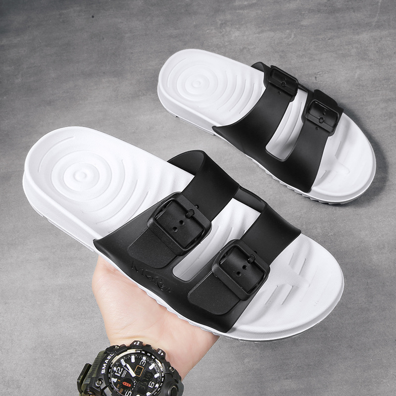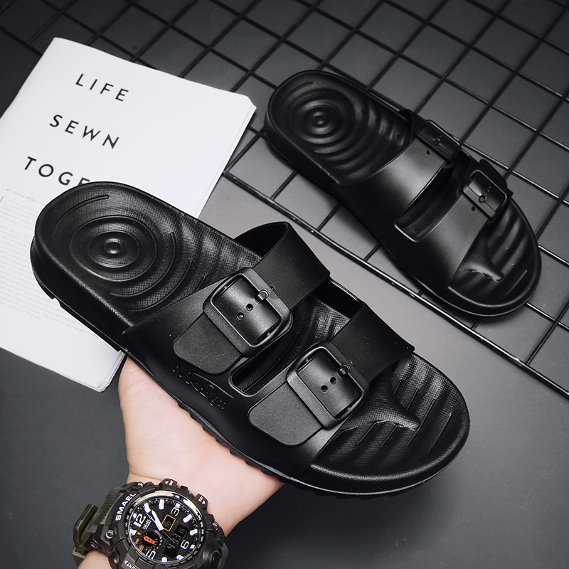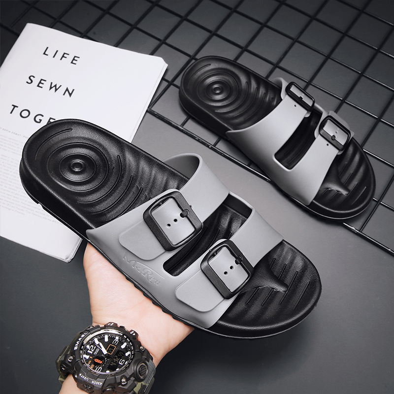 Мужские сандалии с ощущением экскрементов как дома оптом, Нескользящие тапочки с мягкой подошвой, персонализированные пляжные туфли с откидной пуговицей на толстой подошве, летний отдых