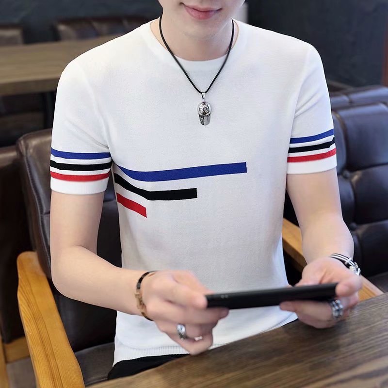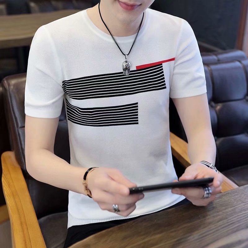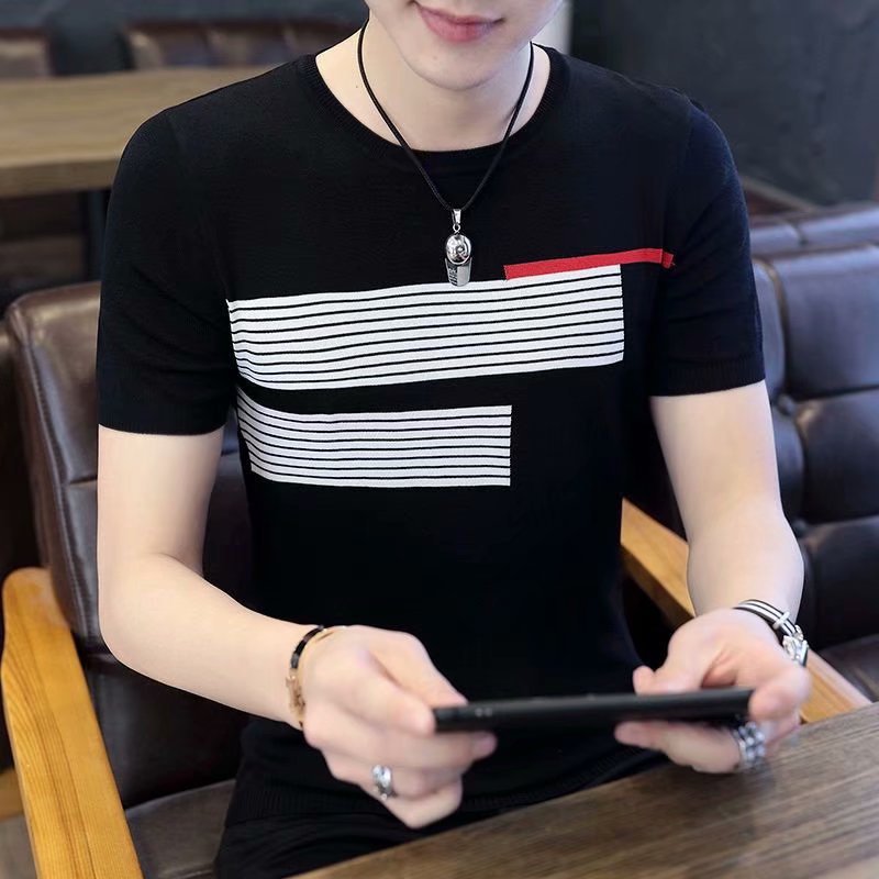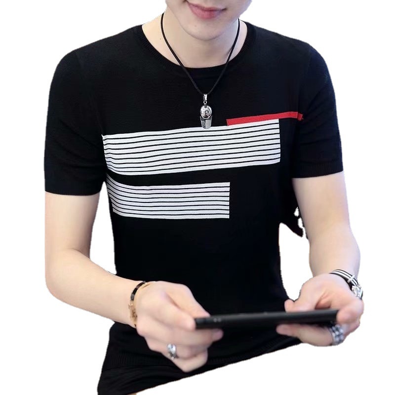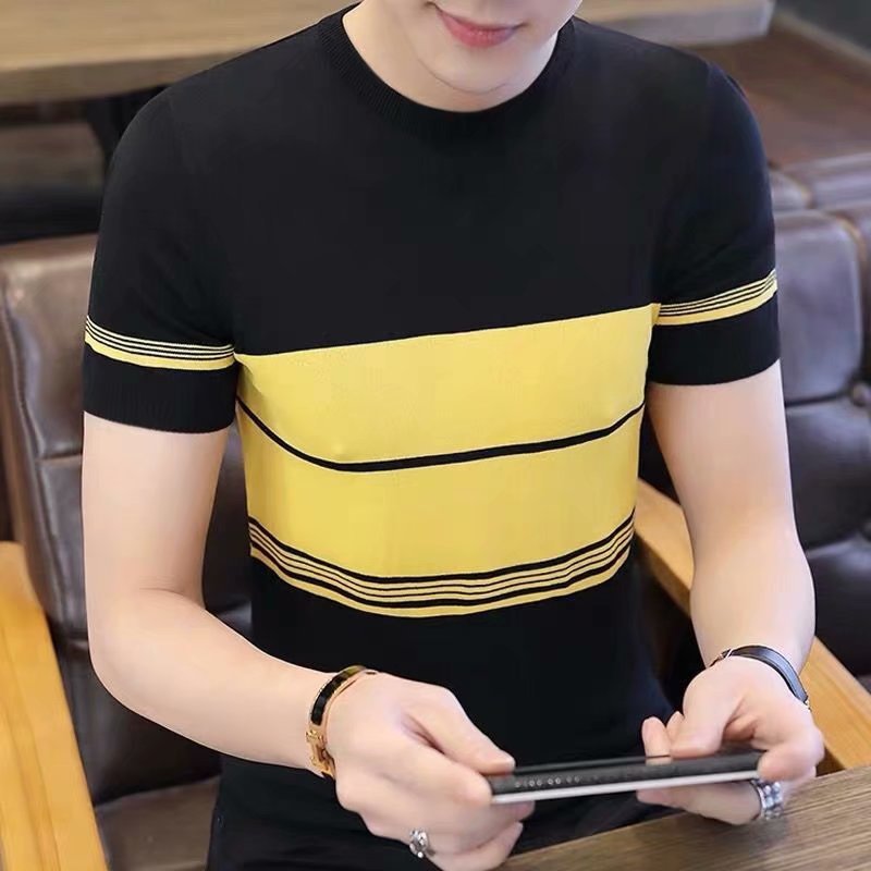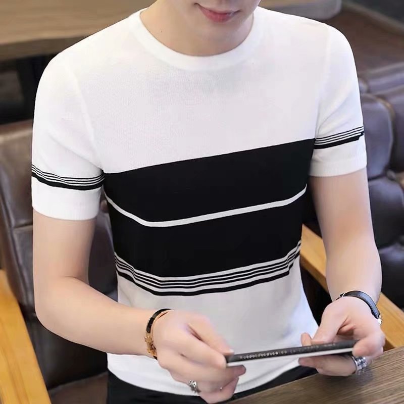 Полосатая футболка с короткими рукавами для мужчин больших размеров 2023 летняя новая приталенная Модная брендовая Повседневная Нижняя рубашка трансграничная Внешняя торговля оптом