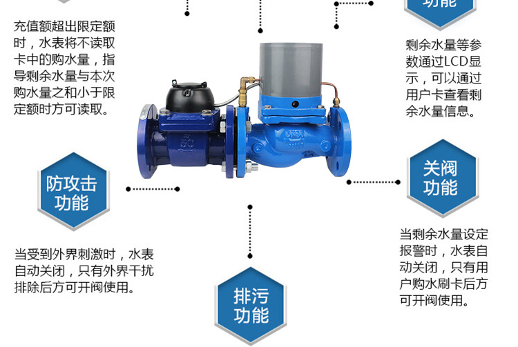 Обработка индивидуального интеллектуального предоплаченного счетчика воды с клапанным управлением RF IC-карта Китайский и английский крупногабаритный промышленный счетчик большого диаметра