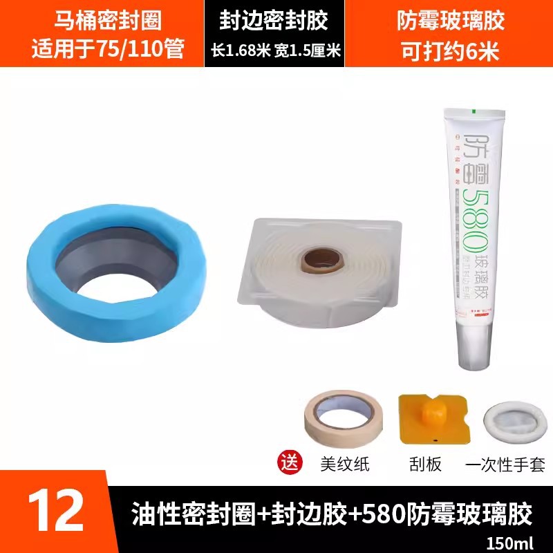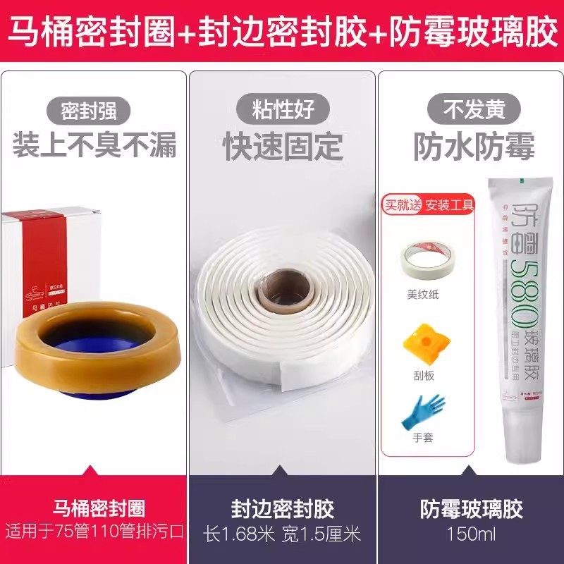 (1) Уплотнитель для унитаза [материал: сливочный клей]; (2) Уплотнитель для унитаза + уплотнительная лента; Фланец дискового затвора + уплотнительная лента + силиконовый герметик; (3) Уплотнитель для унитаза [резиновый глиняный материал]; (4) Уплотнитель для унитаза + уплотнительная лента; Резиновый грязевой фланец + уплотнительная лента + стеклопластиковый клей; (7) Уплотнитель для крепления унитаза; Одна упаковка клея для стекла против плесени объемом 310 мл.; Классификация цветов: Клапан для туалетной воды MS1-J