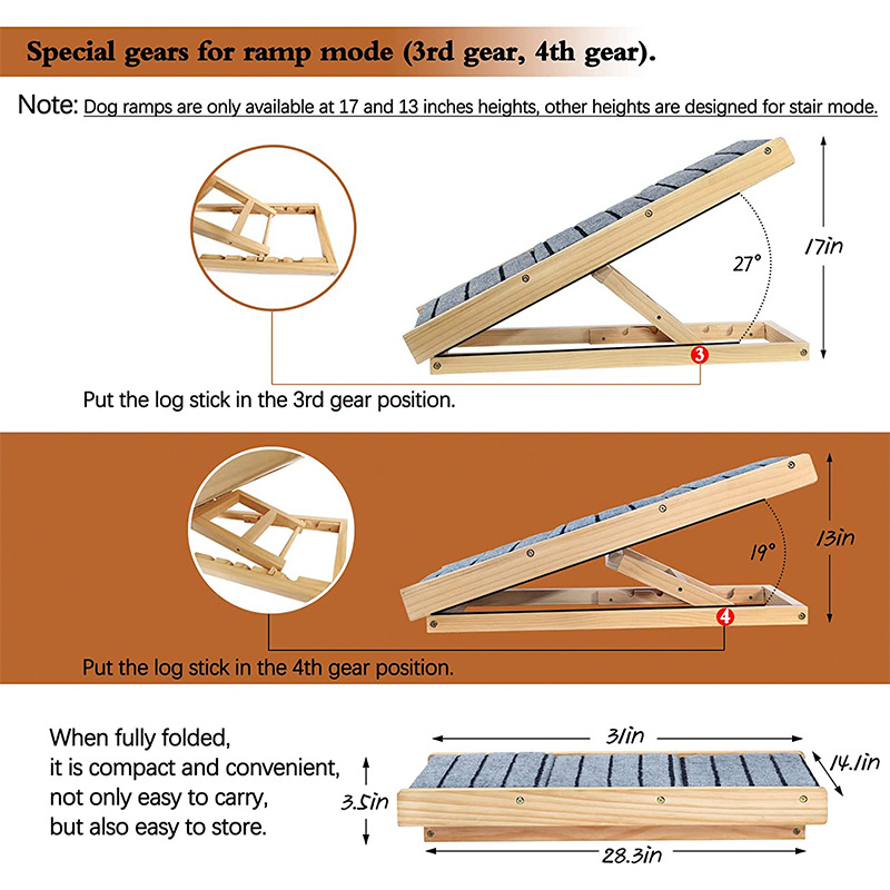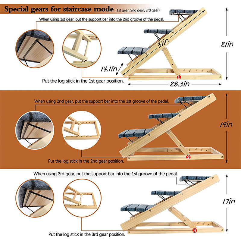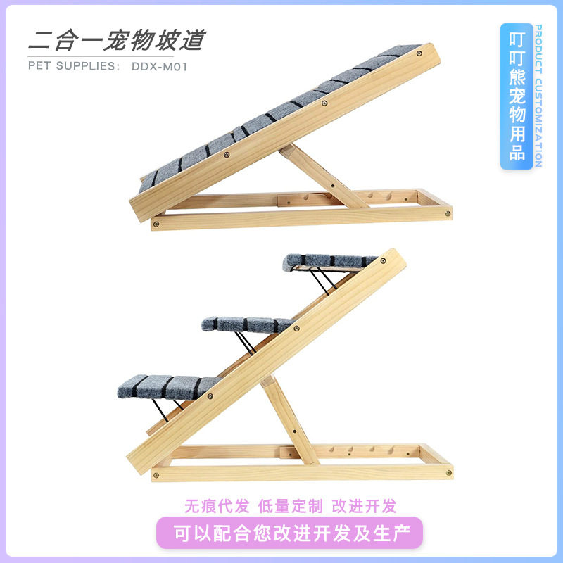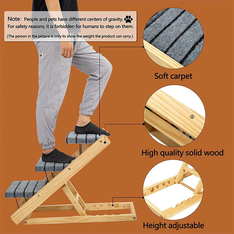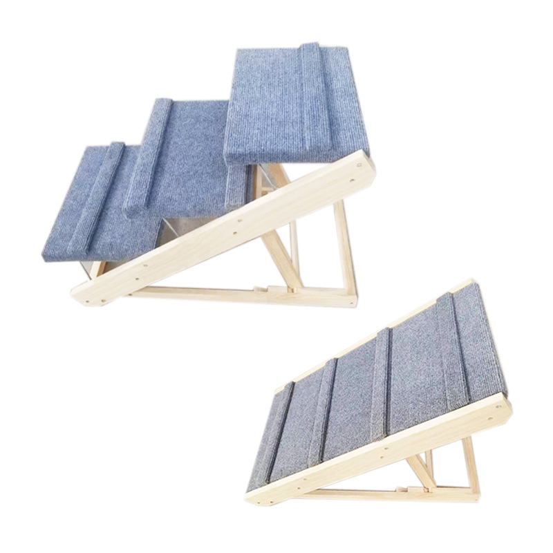 Двухуровневая складная лестница-кровать для питомцев из массива дерева, регулируемая, портативная, с противоскользящим покрытием для кошек и собак