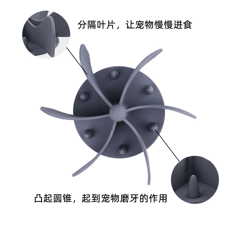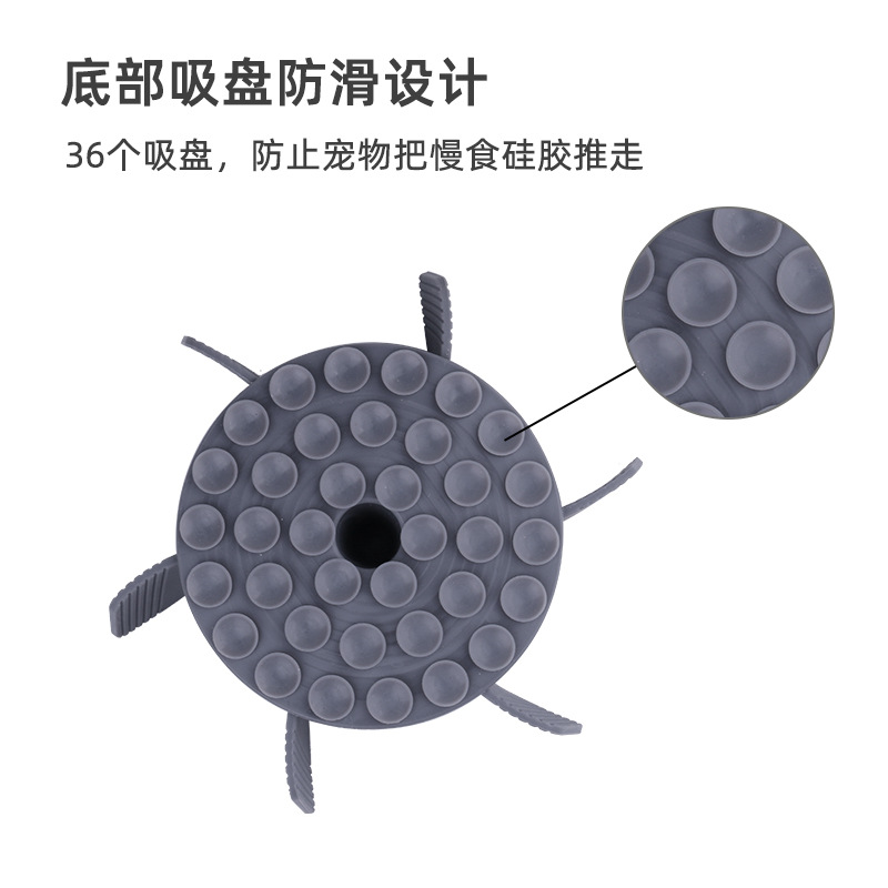 3) 自动吸附于碗的底部,不易脱落,可以有效减缓宠物的进食速度,防止噎着,有利于食物的消化。