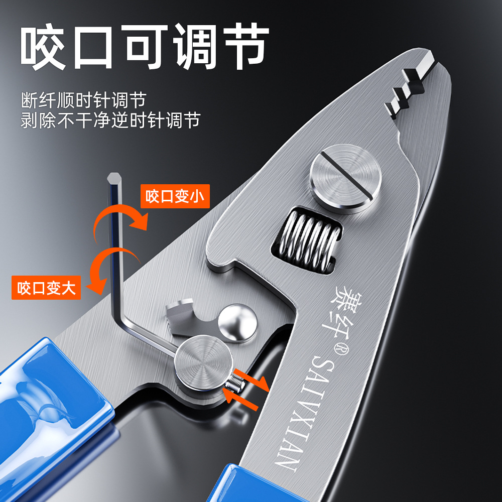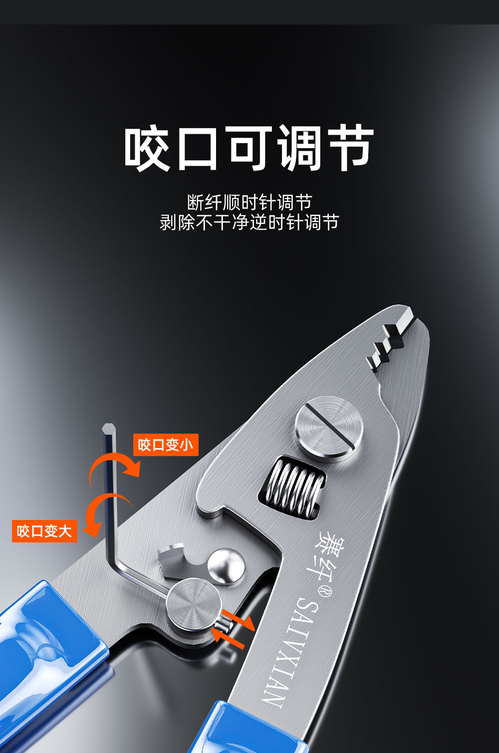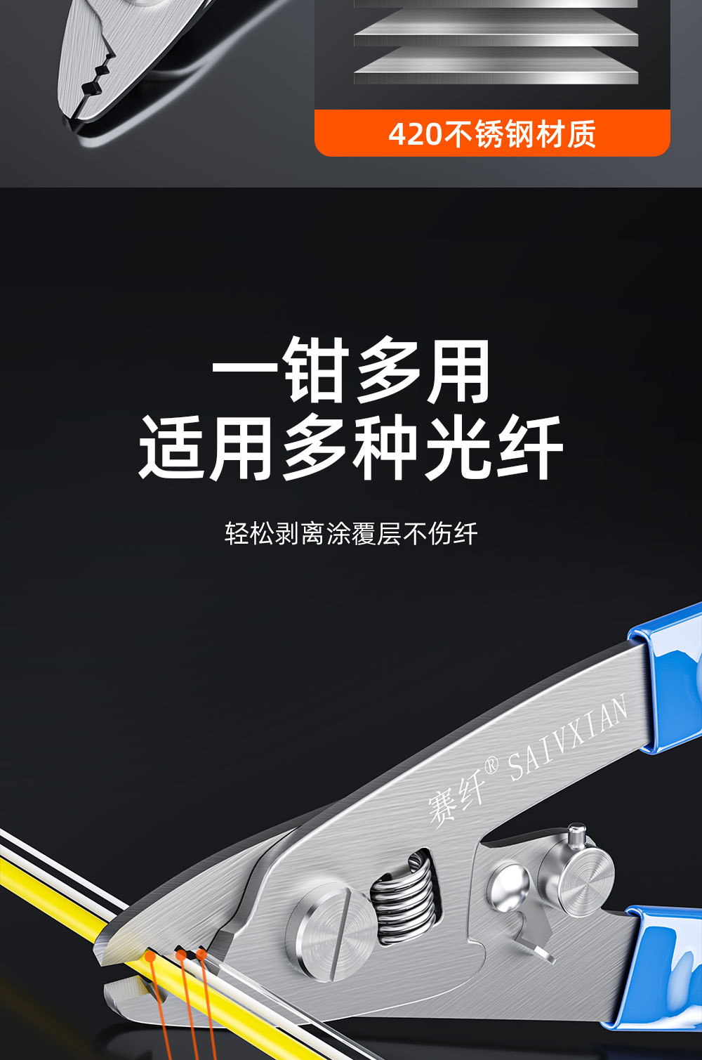 Трехпортовые плоскогубцы для зачистки волокон из нержавеющей стали (синие); Щипцы для зачистки волокон с двумя портами из нержавеющей стали (синие); Однопортовые плоскогубцы для очистки риса (нержавеющая сталь); Съемник металла (нержавеющая сталь); Однопортовые плоскогубцы для очистки риса (высокоуглеродистая сталь); Двухпортовые плоскогубцы Miller (высокоуглеродистая сталь); Трехпортовые плоскогубцы Миллера (высокоуглеродистая сталь); Инструмент для зачистки пластмассы из кожзаменителя (высокоуглеродистая сталь); Инструмент для зачистки кожаной проволоки (высокоуглеродистая сталь); 5G стриппер синий (специально для фотоэлектрического композита); Оранжевые кевларовые ножницы (острые и прочные)