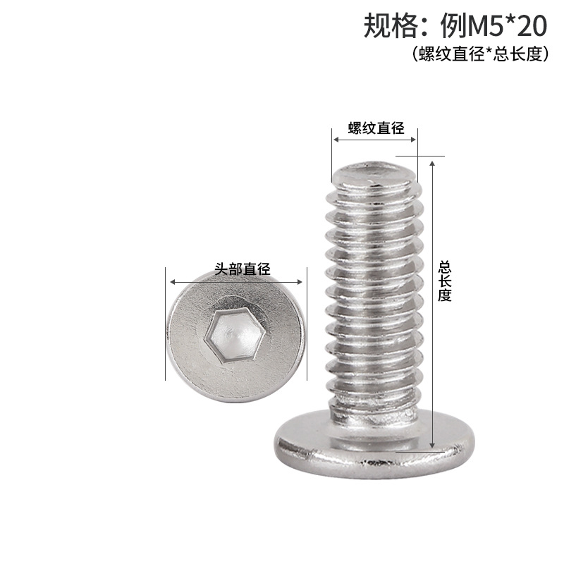 Большой крепежный винт с шестигранной головкой и плоским хвостом из нержавеющей стали 304 Болт M8 с тонкой головкой CM большой внутренний 6-угловой винт с плоской головкой