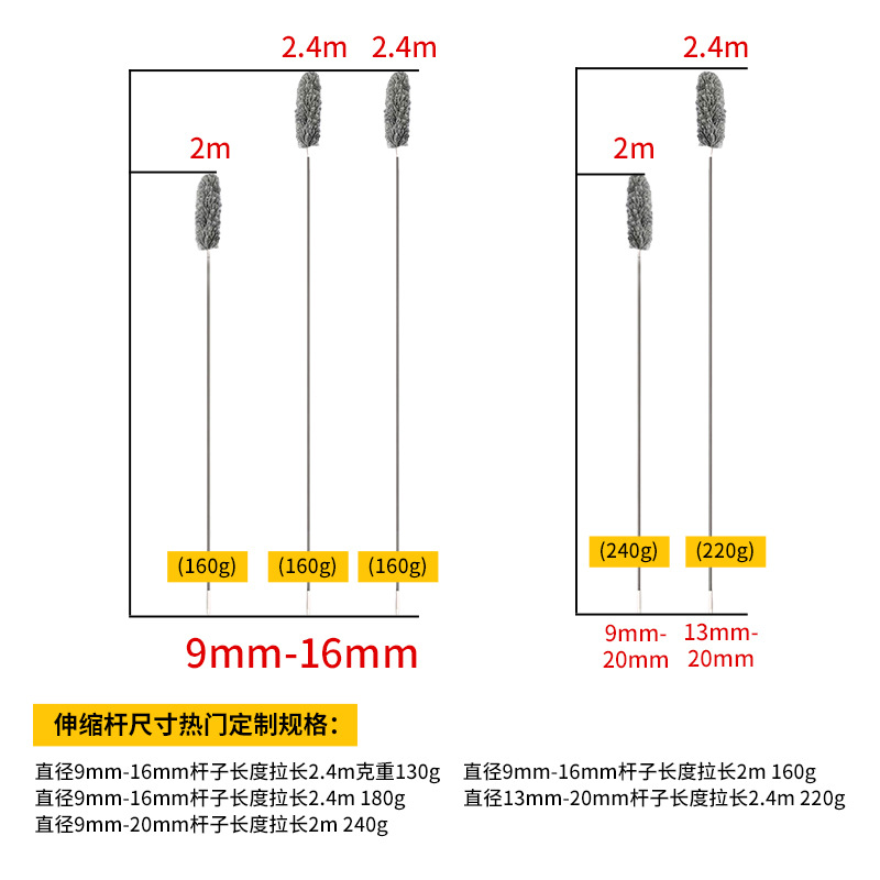 直径9mm-16mm 杆子长度拉长2.4m 180g