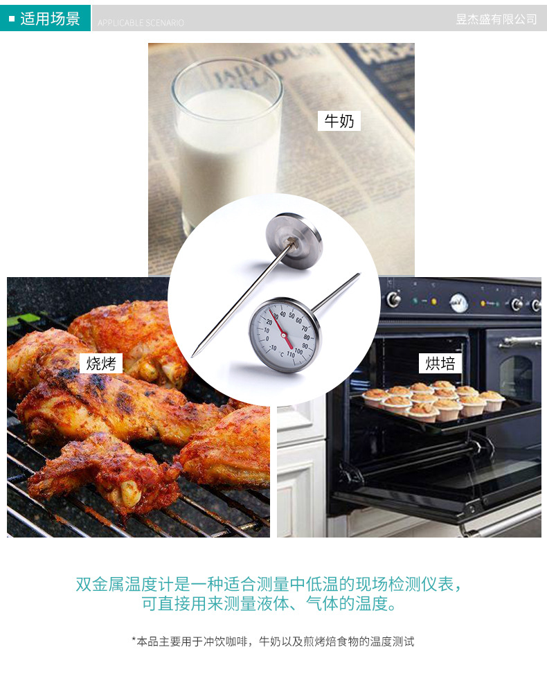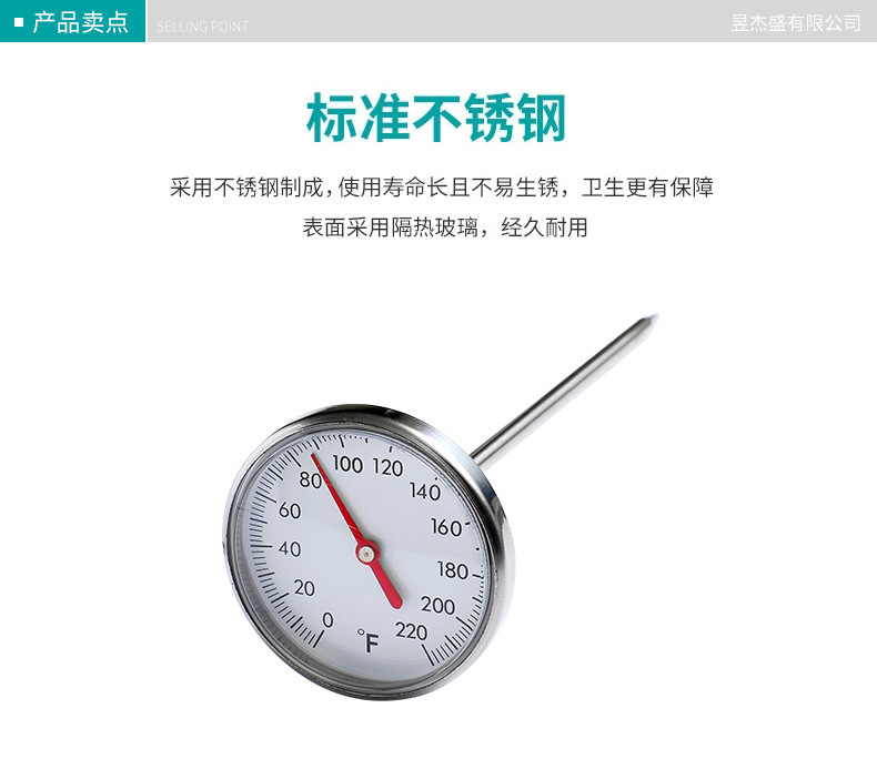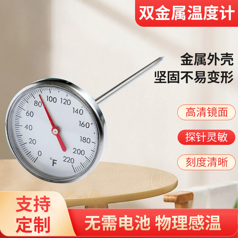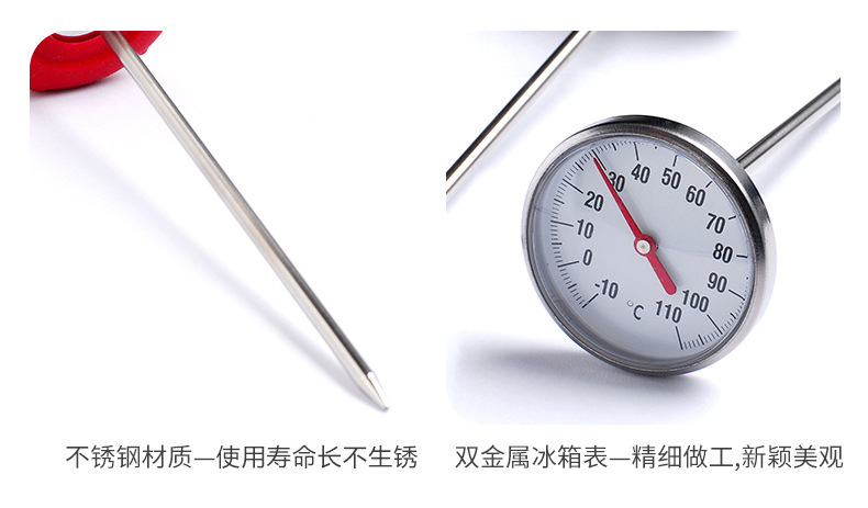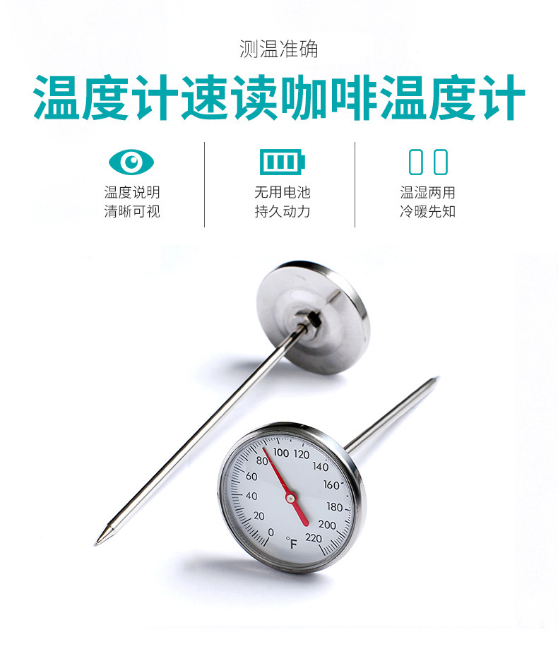 Производитель поставляет термометр-щуп для быстрого измерения температуры кофе, чая и молока для кухни, барбекю и для введения в жидкость.