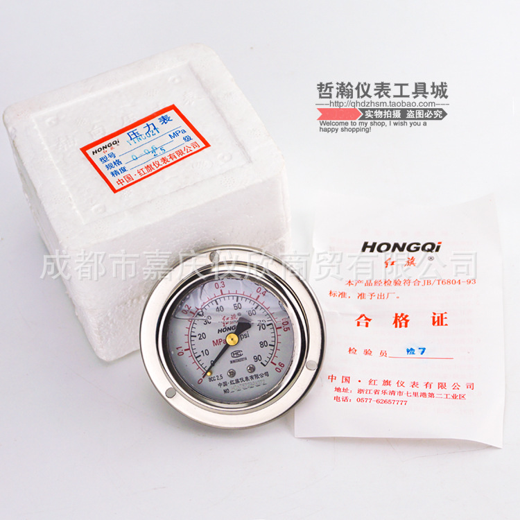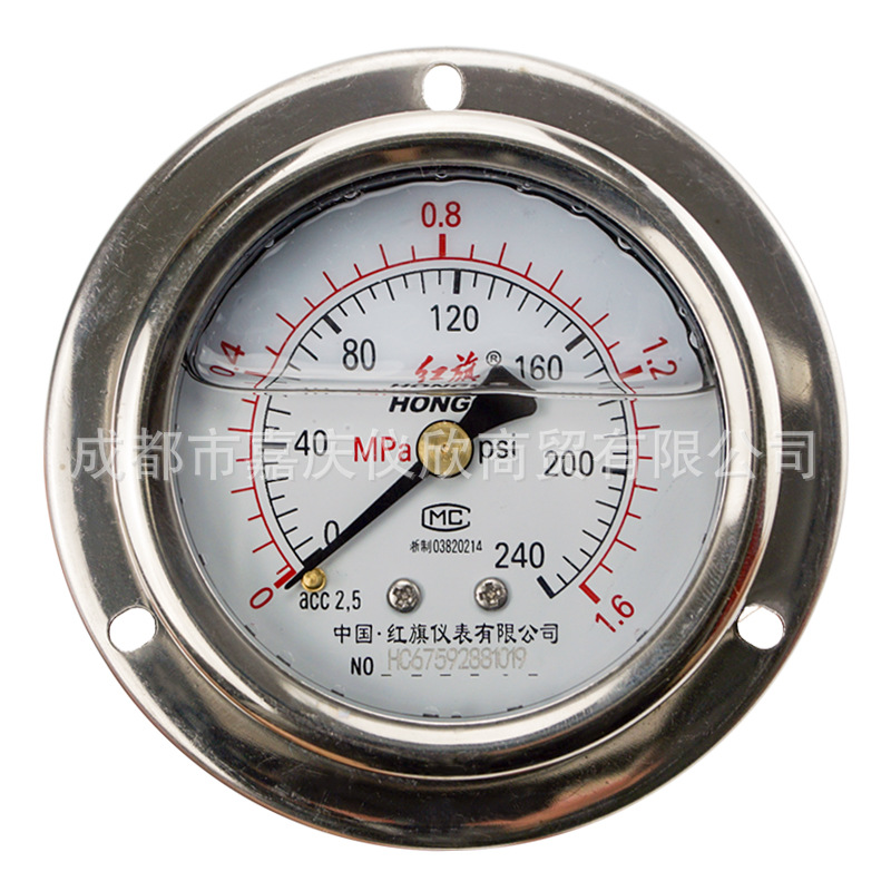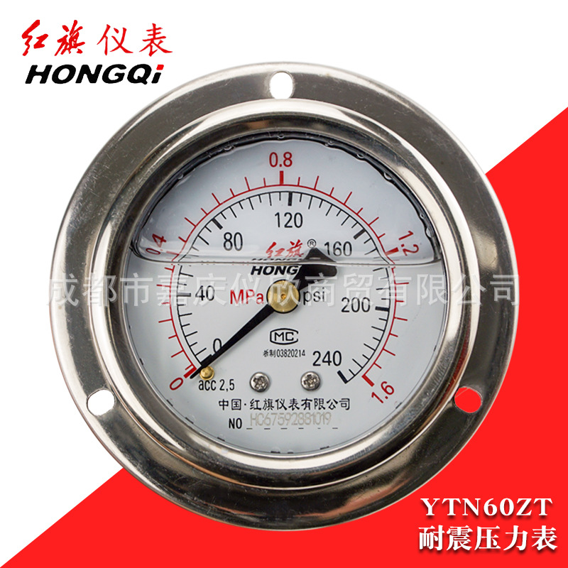 Красный флаг осевой пояс ударопрочный манометр YTN60ZT Гидравлический гидравлический манометр YN ударопрочный амортизируательный вакуумный метр отрицательного давления