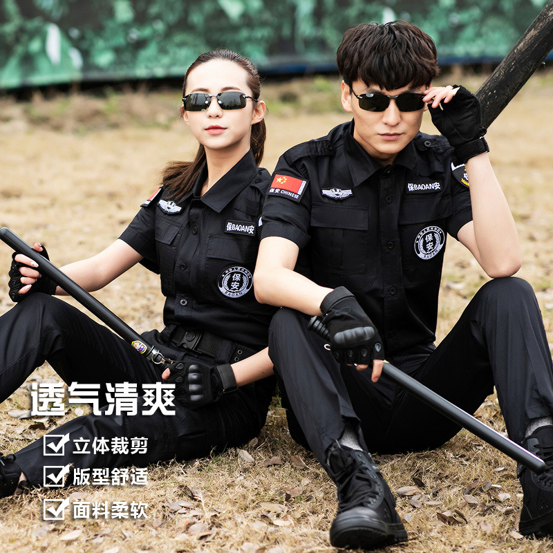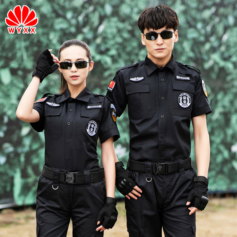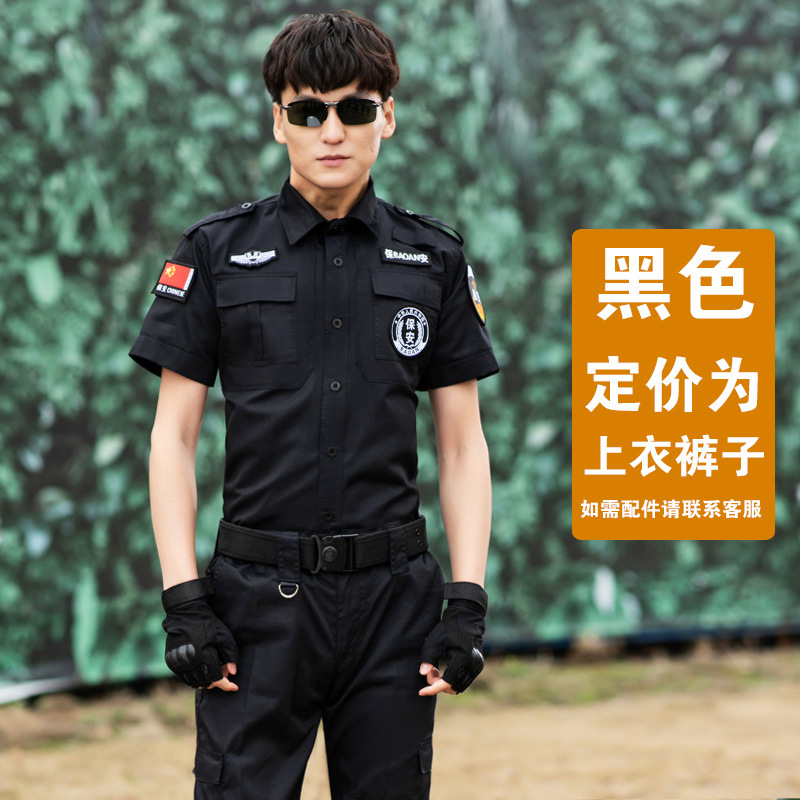 Костюм рабочей одежды безопасности, мужская летняя Защитная форма, черная тренировочная одежда с короткими рукавами, износостойкая одежда для обслуживания недвижимости, летняя одежда