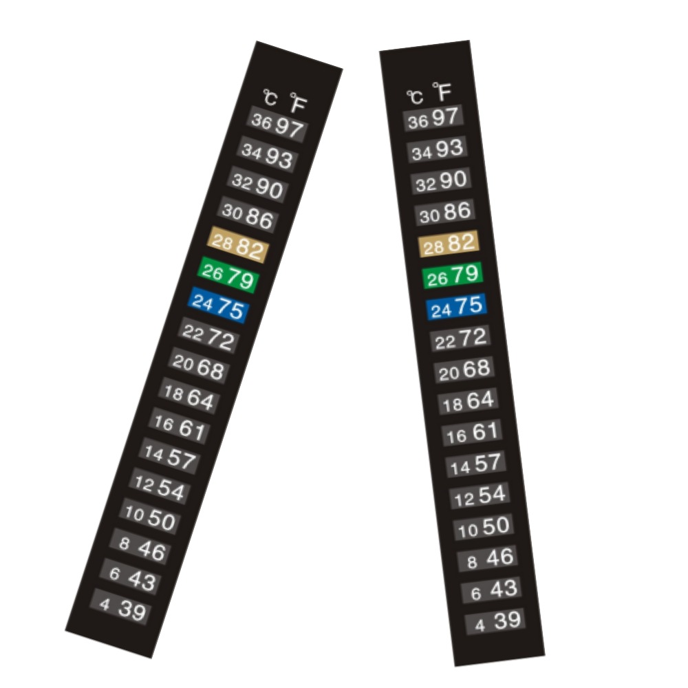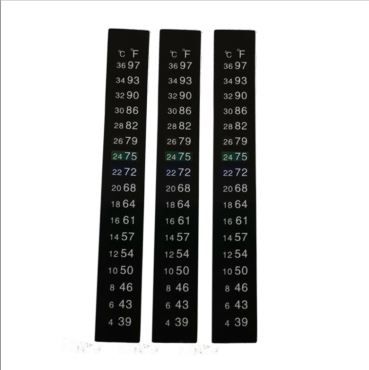 鱼缸温度贴是采用PET+液晶材料,根据温度来完成颜色的变化,可提供温度变化的提示作用。