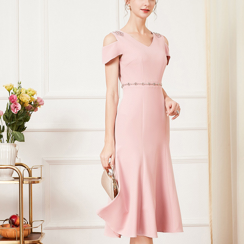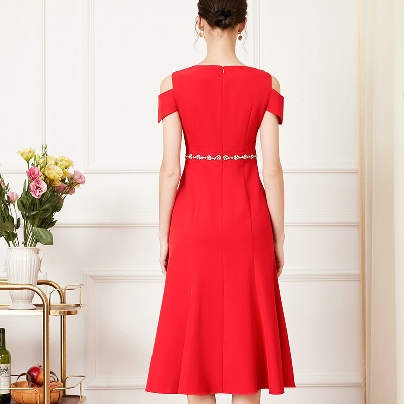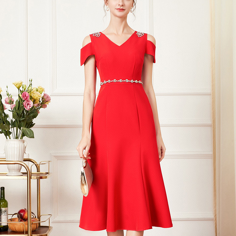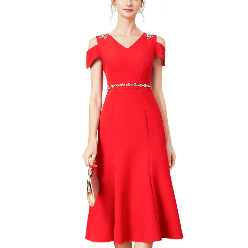 Специальное предложение Шэньчжэнь высокого класса вино красное платье свадебный банкет узкой талией Си свекровь носить Лето плюс размер среднего возраста платье женщины