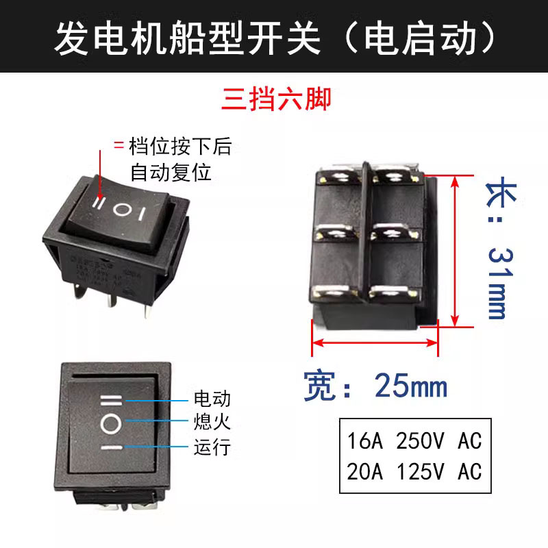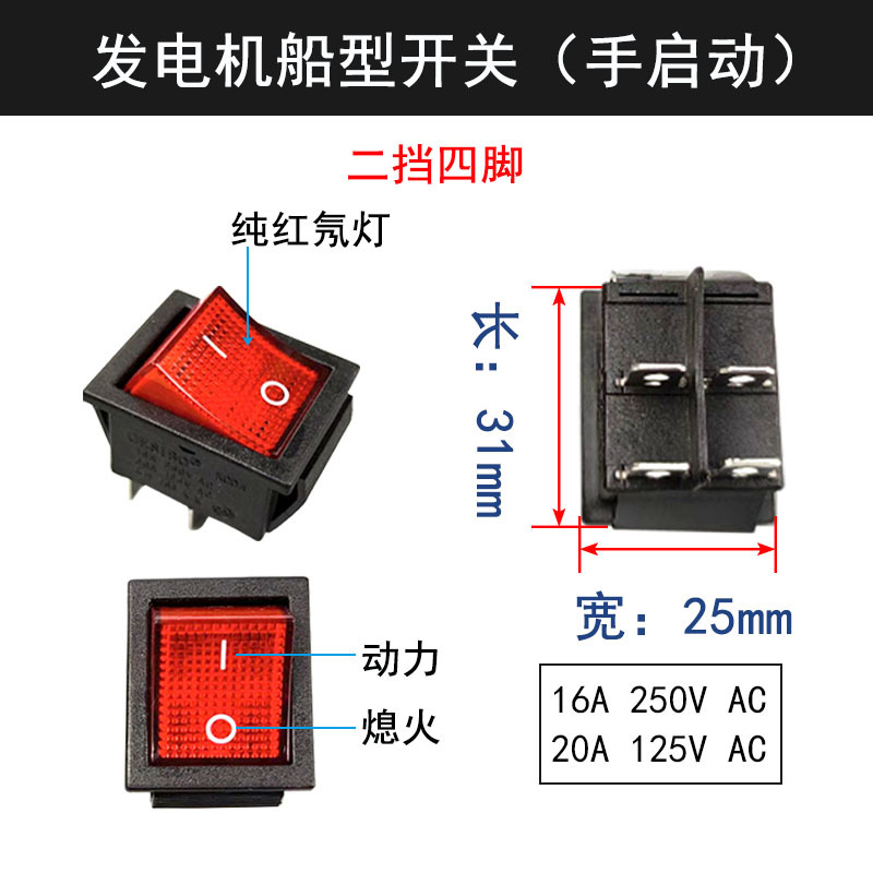 Переключатель пламени типа лодки красный 15A220V выключатель запуска остановки 2-8 кВт однофазный бензиновый двигатель аксессуары для генераторов