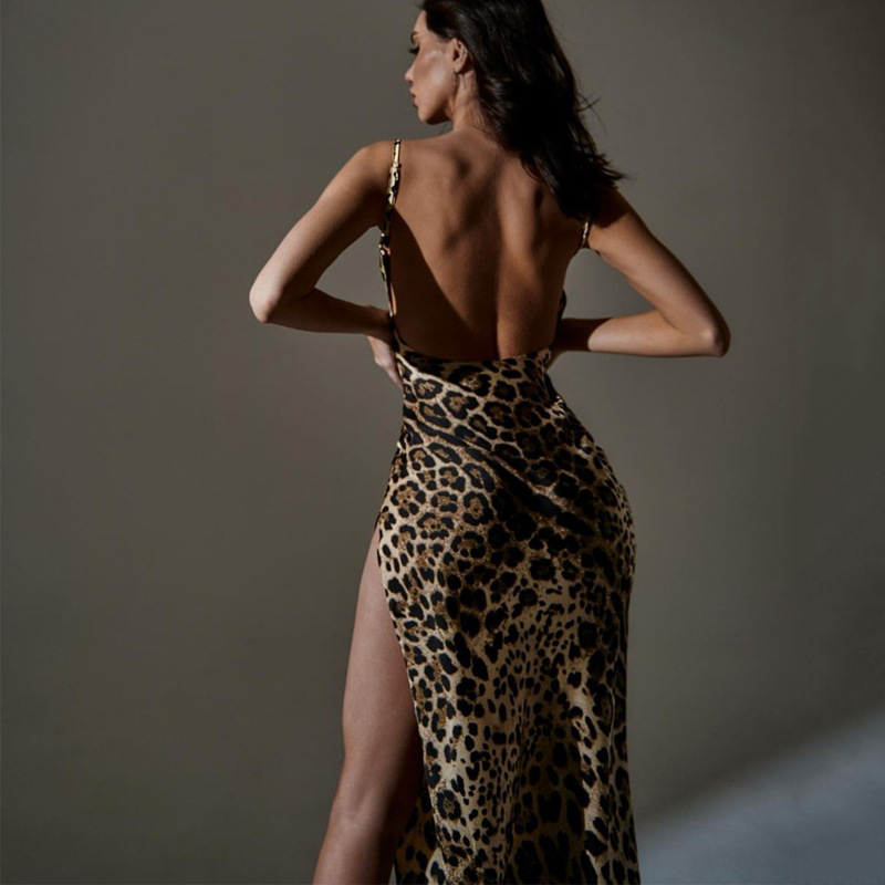 Женская одежда в европейском и американском стиле 2024 летом новая мода с принтом сексуальная открывная спинка платье для внешней торговли оптом