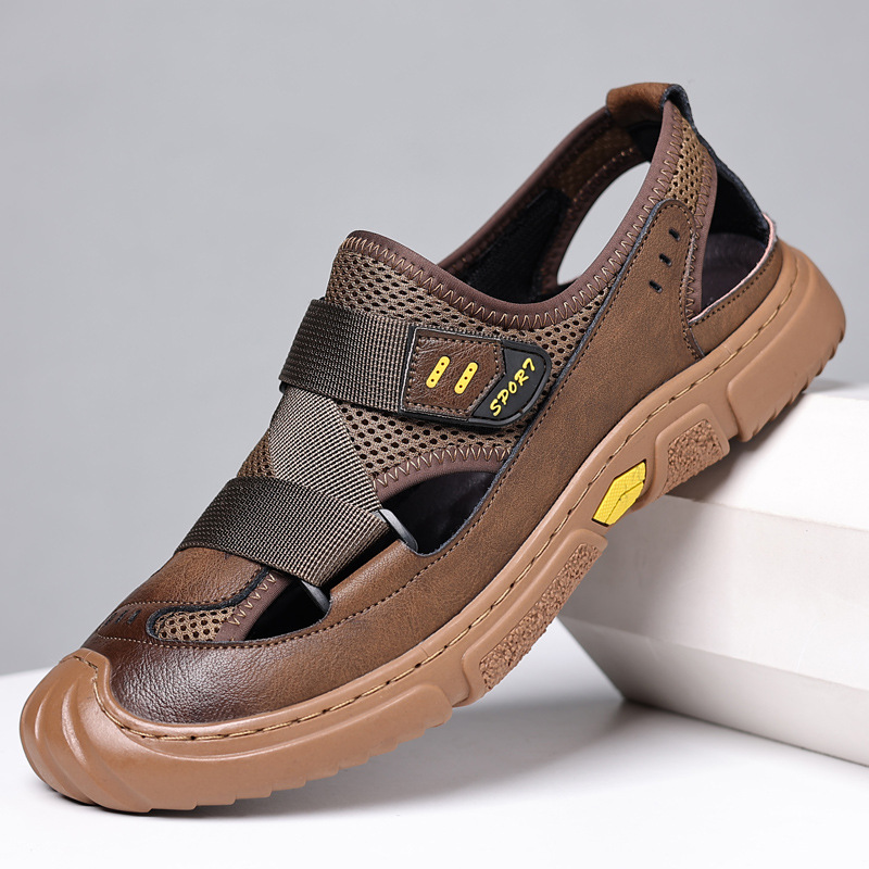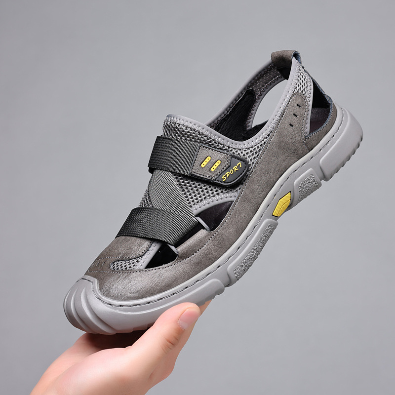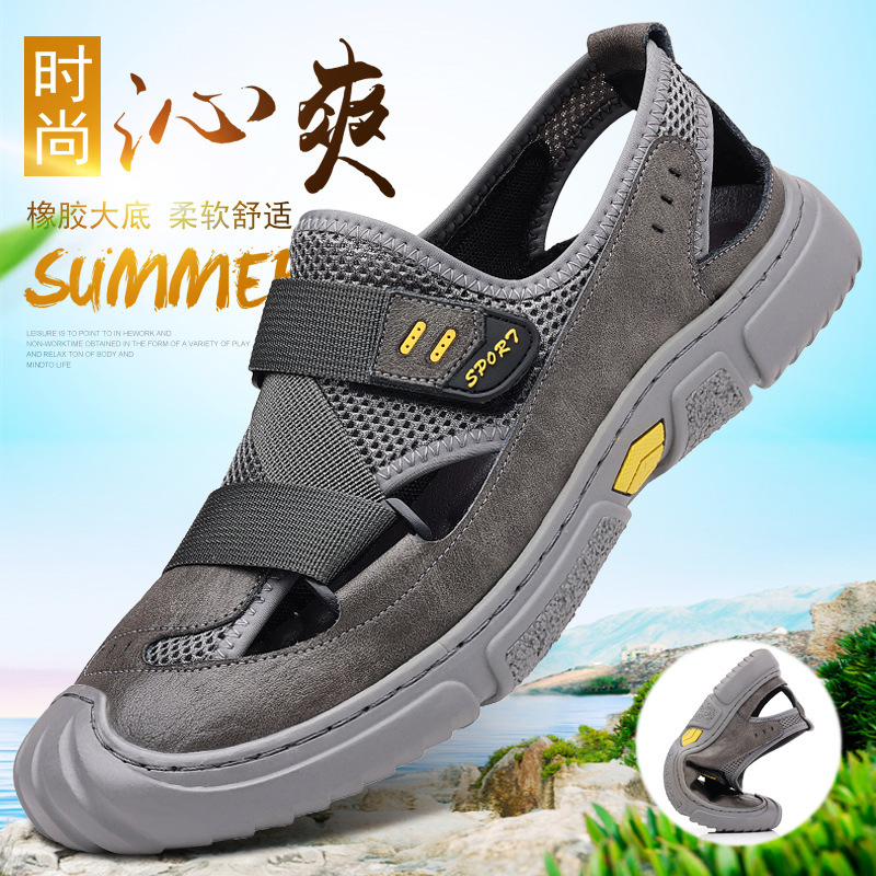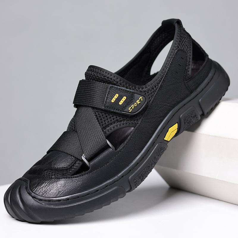 Полые мужские сандалии с мягкой подошвой 2024 летняя новая вьетнамская римская Повседневная пляжная дышащая кожаная обувь с закрытым носком